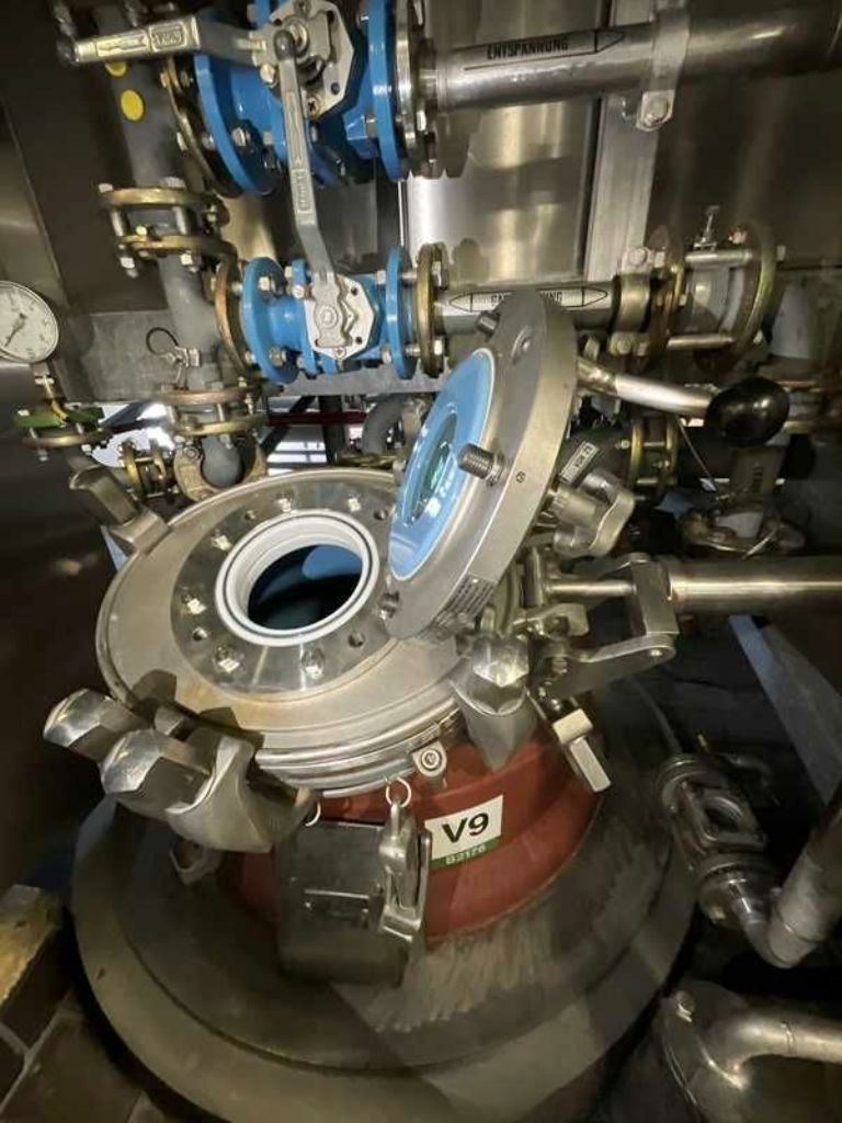 Max bowl speed 1600 RPM, 1138 x G, 800 x 400mm basket ID, 1 sqM filter area, 100 L volume, 125 kg max load. Gas-tight design, top unload. 22 KW XP motor 380/3/50/1450 RPM, feed, rinse and wash pipes, sight glass, hinged top cover, plow, CIP spray ball, control panel. Includes a clean room and Pfaudler V600 861 L glass-lined pressure vessel. 2004 vintage. Excellent condition. Located in Europe.