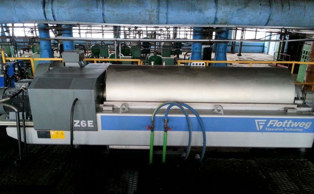 The Flottweg Z6E-4/454 (24 x 98) decanter centrifuge, 316SS. is engineered for high-performance separation processes, making it an ideal choice for industries requiring efficient solid-liquid separation. With a maximum bowl speed of 3200 RPM and a centrifugal force of 3530 x G, this decanter centrifuge is capable of handling a wide range of materials, including the previously utilized DDGS. The 17-degree beach angle optimizes the separation process, ensuring that the solids are effectively discharged while the clarified liquid is collected with minimal carryover. This design not only enhances the efficiency of the separation but also contributes to the longevity of the equipment by reducing wear and tear on the components.