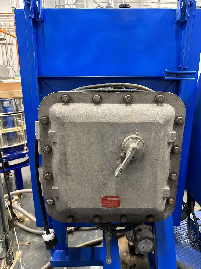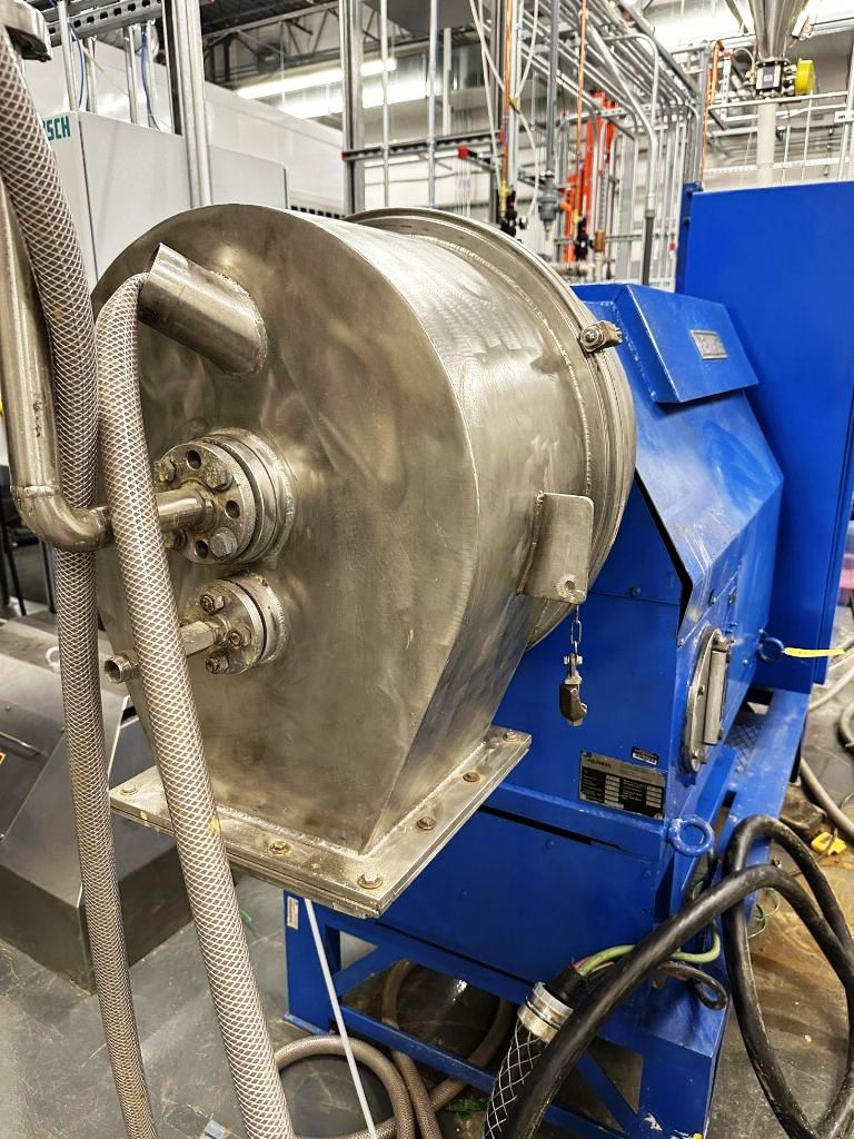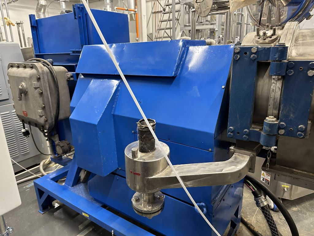 The Heinkel HF 300 Inverting Filter centrifuge, 316SS. is engineered to deliver exceptional performance in various industrial applications, particularly in the chemical and pharmaceutical sectors. With a maximum bowl speed of 3464 RPM and the ability to generate forces up to 2000 x G, this centrifuge is designed to efficiently separate solids from liquids, ensuring optimal cake formation and minimal product loss. The impressive cake capacity of 8.2 KG allows for substantial processing capabilities, making it a valuable asset for operations requiring high throughput and reliability. The robust construction of the centrifuge, utilizing 316 stainless steel, ensures excellent resistance to corrosion and wear, thus enhancing the longevity and durability of the equipment in demanding environments.