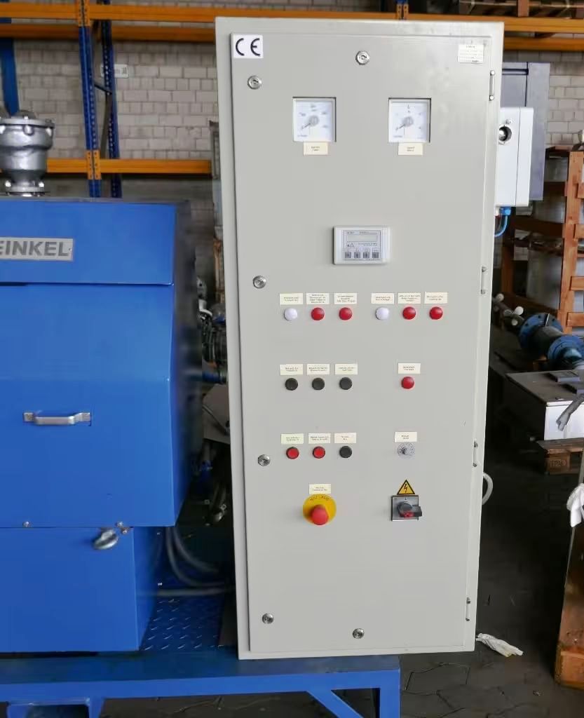 Equipped with a powerful 4 KW explosion-proof hydraulic motor operating at 380/3/50/2875 RPM, the Heinkel HF 300 delivers reliable and consistent performance. Additionally, the 1 KW explosion-proof pump motor enhances the system's efficiency, ensuring that the feed material is effectively introduced into the centrifuge for optimal separation. The included control panel and manuals facilitate user-friendly operation and maintenance, allowing operators to monitor and adjust settings with ease. This centrifuge, dating back to 2000, has been maintained in excellent condition, making it a valuable asset for any facility looking to enhance their separation capabilities. Located in Europe, it is readily available for industries seeking to improve their production processes with a reliable and efficient centrifuge.