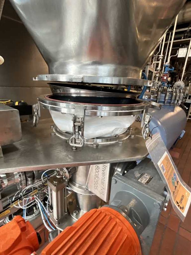Max bowl speed 1940 RPM, 1255 x G, 0.45 sqM filter area, max volume 52 L, max load 65 kg. 22 KW XP motor 400/690/3/50/2940 RPM, 5.5 KW XP inverting mechanism motor, 1.5 KW XP feed pump motor, Allen-Bradley Panelview Plus 1250 PLC control panel, BPE Burt polymer mixing system with tank and control panel, (4) Hayward PMS15 valve controllers, 150mm PSL discharge valve and piping, unitized on a SS stand and skid. 2002 vintage. Converted in 2006 from 450mm to a 600mm drum. Excellent condition. Located in Europe.