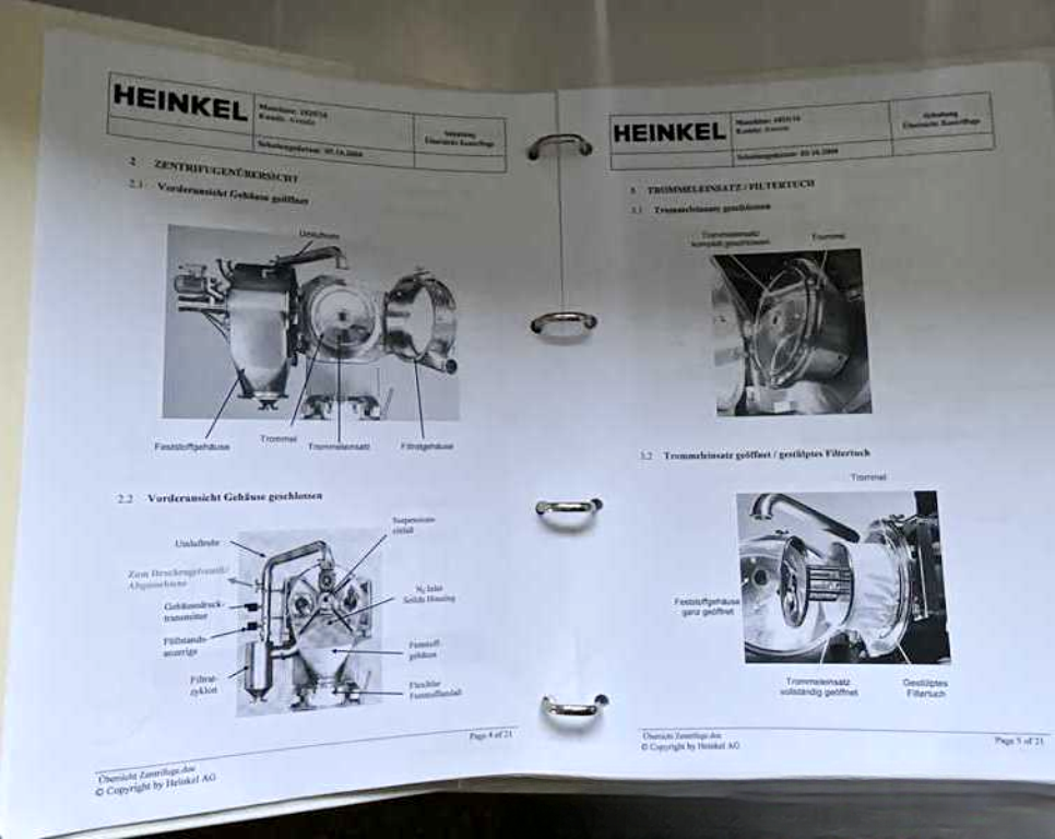 Constructed from high-quality 316L stainless steel, the Heinkel HF 600.1 is designed for durability and resistance to corrosion, making it suitable for use in harsh environments. The unit is mounted on a sturdy stainless steel stand and skid, ensuring stability during operation. This centrifuge, originally manufactured in 2002 and converted in 2006 from a 450mm to a 600mm drum, is in excellent condition and ready for immediate deployment. Located in Europe, it presents a valuable opportunity for businesses seeking reliable and efficient separation technology.