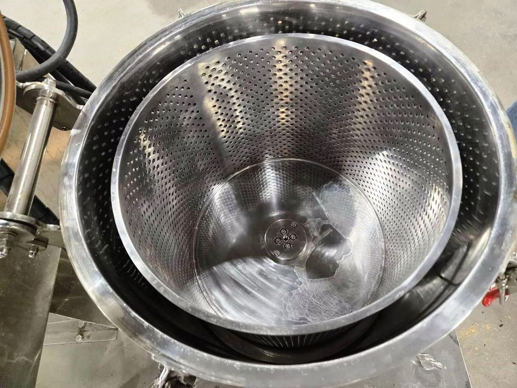 The Lanphan PP-60 hemp/ethanol extraction centrifuge, 316L SS. is engineered for high-efficiency extraction processes, making it an essential asset for industries focused on hemp and ethanol applications. With a maximum bowl speed of 1500 RPM and a force of 756 x G, this centrifuge is designed to optimize the separation of valuable compounds from biomass. The spacious 600 x 300mm basket ID allows for a substantial capacity of 12 kg biomass per batch, accommodating the needs of medium to large-scale operations. The 60 L cake volume ensures that users can process significant quantities of material in a single cycle, enhancing productivity and reducing operational downtime. The centrifuge operates at low temperatures, with a maximum capability of -50°C, which is crucial for preserving the integrity of sensitive compounds during extraction processes.