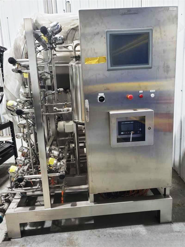 Equipped with a robust 22 KW motor operating at 460V/3/60, the Alfa-Laval Culturefuge 200 is designed for durability and reliability. The skid includes a sludge tank, flow meter, and a lobe pump, all of which contribute to its comprehensive functionality. The PLC control panel, featuring a user-friendly touch screen HMI, allows for precise monitoring and control of the separation process, enabling operators to adjust parameters in real-time for optimal performance. The entire unit is mounted on a stainless steel skid, ensuring stability and ease of mobility within the production facility. Additionally, the package comes complete with essential tools, spare parts, and thorough documentation, making it a ready-to-use solution for any biotech operation. This 2020 vintage unit has never been used, providing buyers with a high-quality, like-new option for their processing needs.