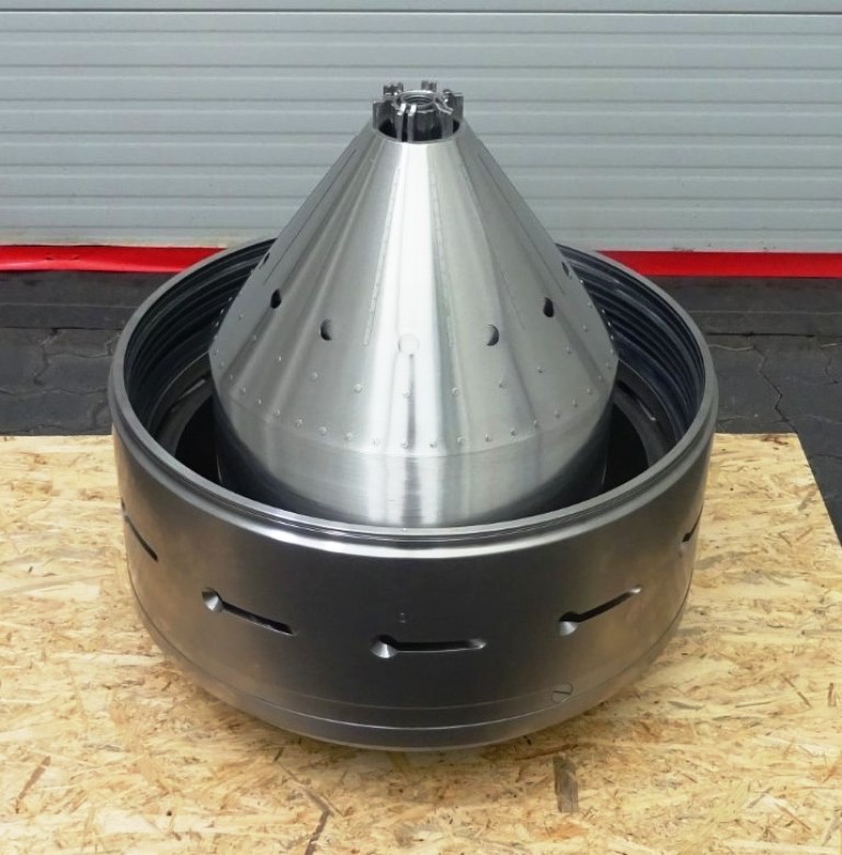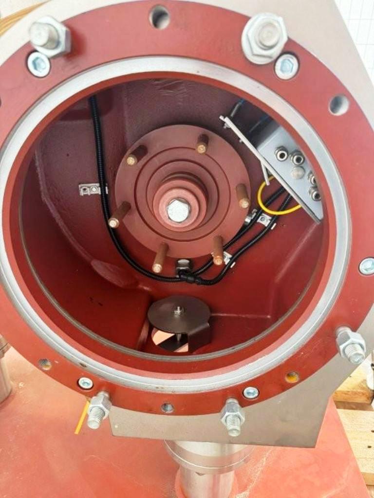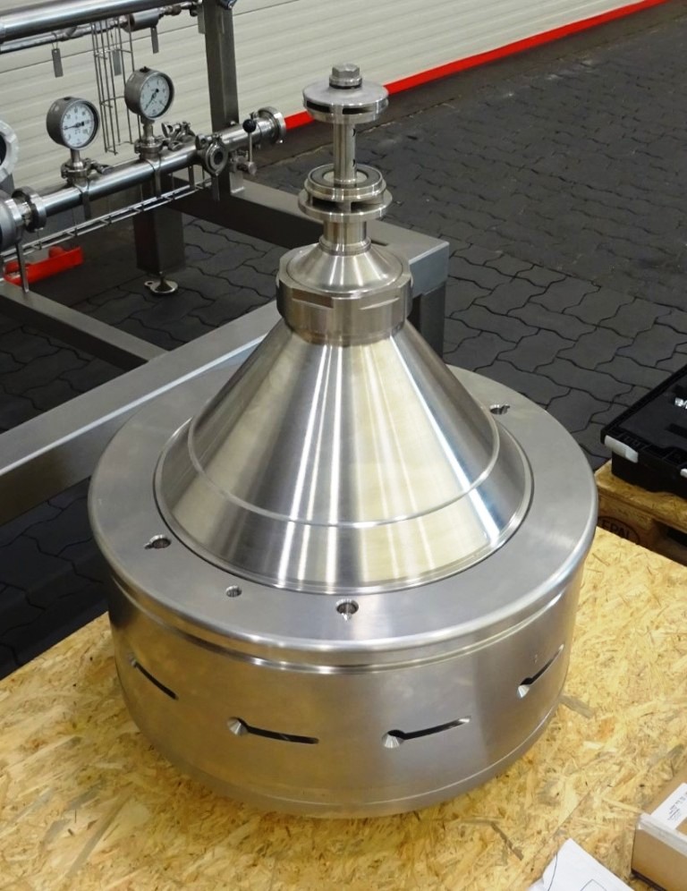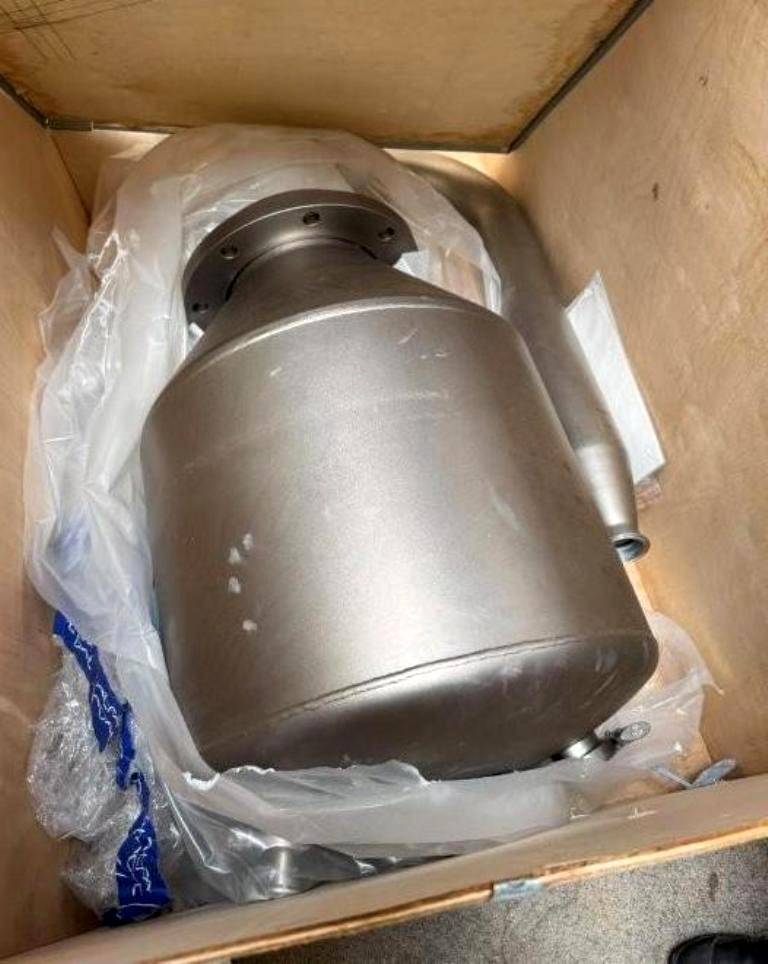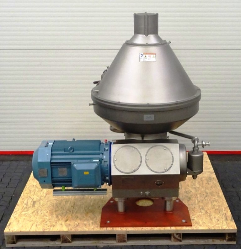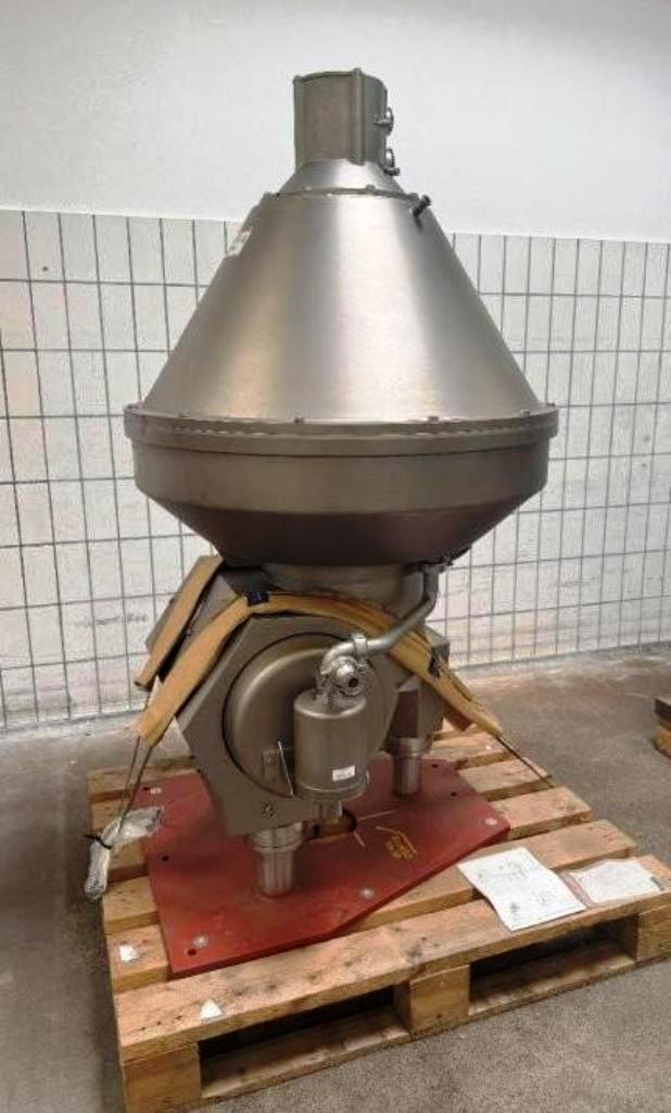 Max bowl speed 5650 RPM, rated @ 6000 LPH, bowl volume 34 L, both liquid phases discharged under pressure via adjustable Centrizoom paring disc. 37 KW motor 400/690/3/50/1481 RPM, sludge cyclone, water harness, base frame, all valves, gauges and piping, tools, spare parts, manuals, standard process liquid unit mounted on a SS skid and PLC control panel with VFD and touch screen HMI. 2023 vintage. Never used. Located in Europe.