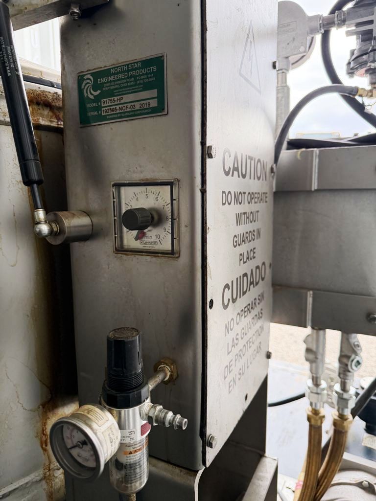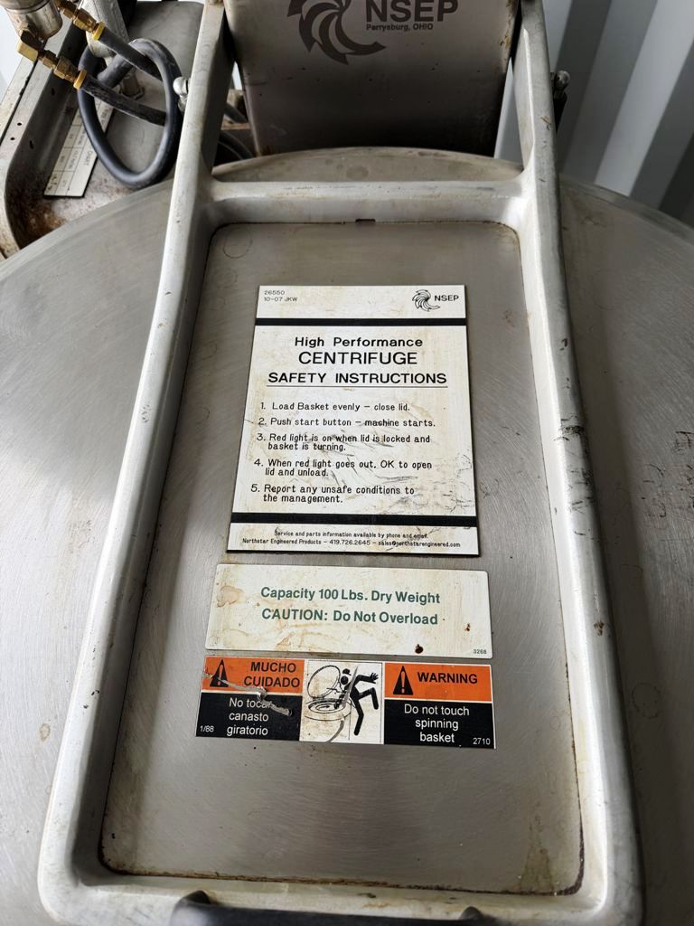 Constructed from high-quality 304 stainless steel, the North Star 755 XP is not only durable but also resistant to corrosion and wear, making it suitable for a variety of industrial environments. The stainless steel skid mount provides stability and ease of installation, allowing for seamless integration into existing workflows. The XP timer controls add a layer of precision to the operation, enabling users to set specific run times for different processes, thus enhancing productivity and reducing the risk of human error. With its 2019 vintage, this centrifuge is in excellent condition, reflecting a commitment to quality and reliability that is essential for any industrial operation. Whether used in chemical processing, food production, or wastewater treatment, the North Star 755 XP perforate basket centrifuge is designed to deliver consistent results and high throughput, making it a valuable asset for any facility.