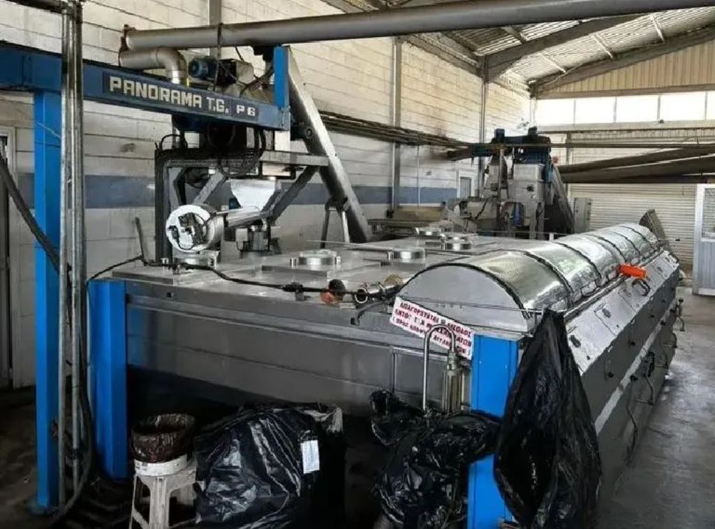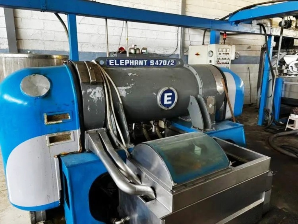 Two phase continuous milling system includes: olive hopper with conveyor belt and leaf remover, washer with hopper and screw conveyor, hammer crusher, Panorama 700 1000 LPH double basin malaxers, paste pumps, Elephant S 470/2 decanter centrifuge with vibrator filter, Jumbo 2 decanter and Super 2 decanter with vibrator filter, screw conveyor to remove solids from centrifuge, olive oil feed pumps, P1500/2000 oil purifiers, main control panel, washer control panel, crane system and manuals. 2004 vintage. Excellent condition.