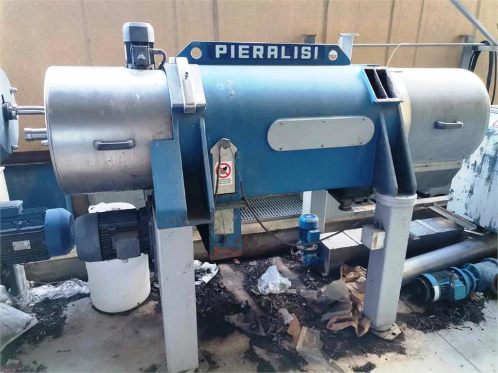 The Pieralisi SC-90 decanter centrifuge, SS. is engineered for high-efficiency separation processes, particularly suited for the olive oil industry. With a maximum bowl speed of 4100 RPM and a centrifugal force of 3318 x G, this decanter centrifuge is capable of processing up to 9000 liters per hour, making it an ideal choice for large-scale production facilities. The dimensions of the bowl, measuring 353 x 1518mm (13.9 x 59.8 inches), allow for optimal separation of solids and liquids, ensuring that the end product meets the highest quality standards. The robust 15 KW motor operates at 380V, 3-phase, and 50Hz, providing reliable performance while the 1:92 cyclo gearbox enhances torque and efficiency, further contributing to the machine's overall operational effectiveness.