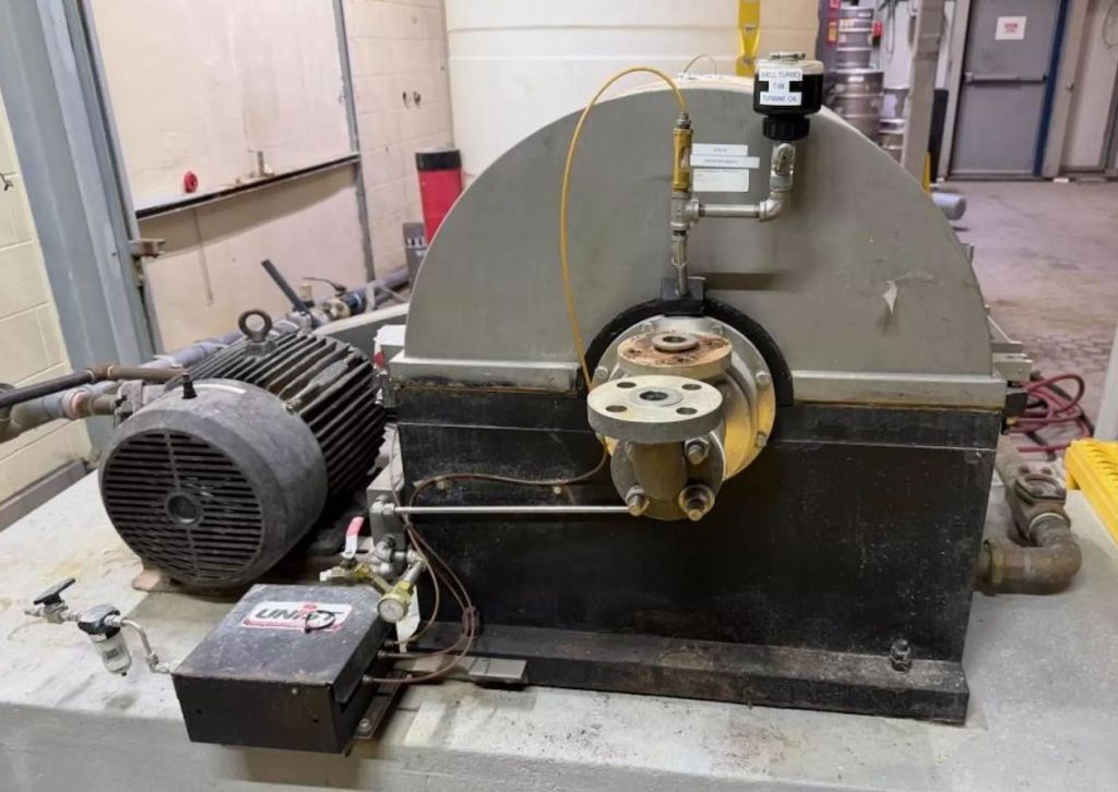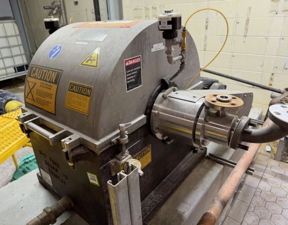 Max bowl speed 3200 RPM, 250 PSI/250 F max, rated @ 40 GPM (9000 LPH) for multistage liquid/liquid extraction or washing, 25 GPM (6000 LPH) for broth fermentation. 10 HP motor 575/3/60/1525 RPM, mechanical seals, relay controls and pharmaceutical ASCO tubes. 2003 vintage. Very good condition. Located in Canada.