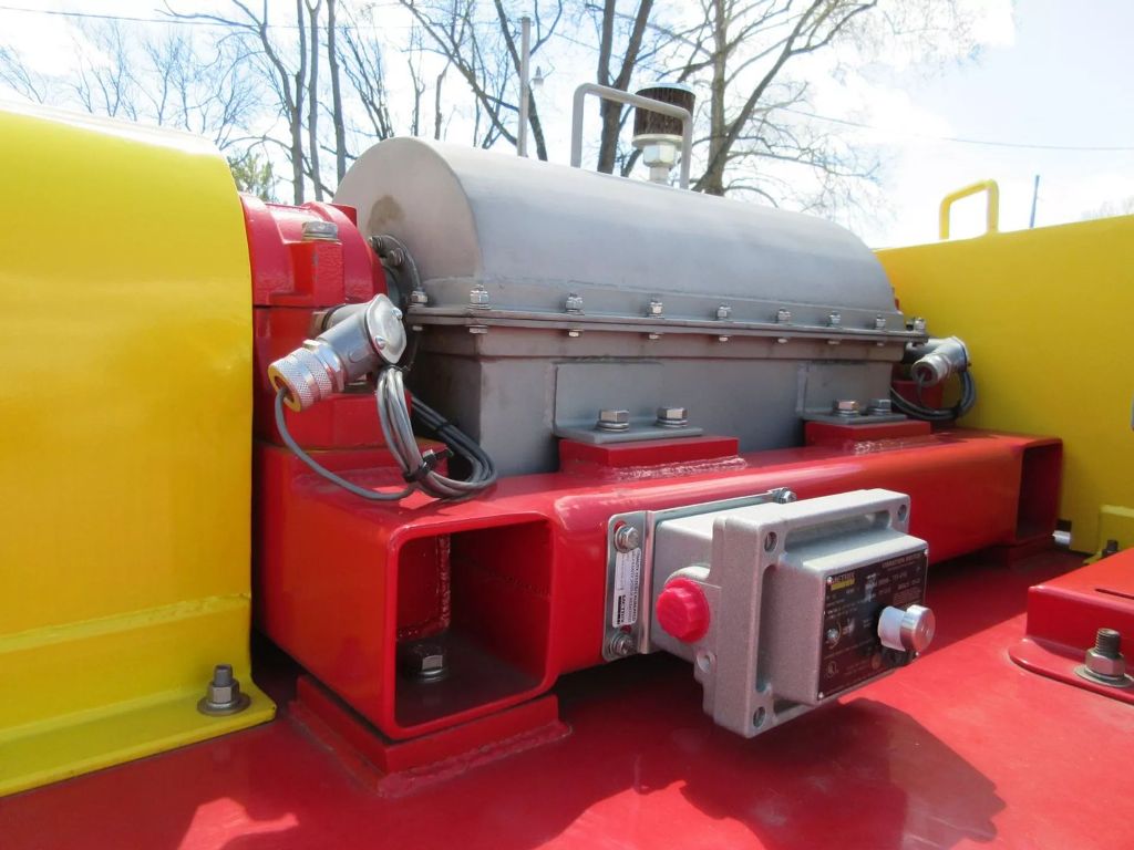 Max bowl speed 6000 RPM, 3070 x G, 2" single lead hardsurfaced conveyor, new 10 HP motor 230/460/3/60/3500 RPM, 95:1 gearbox, new 5 HP backdrive, feed tube, guards and chutes, unitized on a sub-base with vibration switch/isolators, mounted on a portable stand. Reconditioned and unused since.