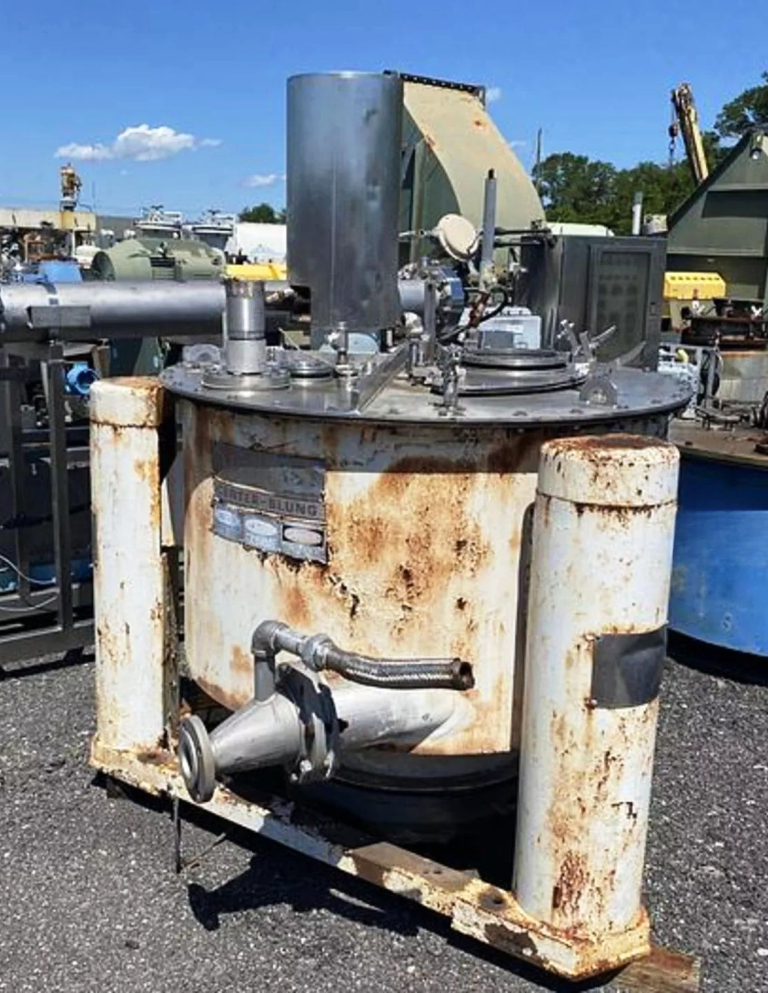 The Tolhurst 48 x 24 Batch-O-Matic perforate basket centrifuge, 316L SS. is engineered for high-efficiency separation processes in various industrial applications. With a maximum bowl speed of 1080 RPM and capable of generating up to 900 x G, this centrifuge is designed to handle significant volumes of material while ensuring optimal separation of solids from liquids. The bottom dump feature allows for easy and efficient discharge of processed materials, while the integrated plow system enhances the mixing and movement of materials within the basket, ensuring uniform processing and improved product quality. The Oilgear hydraulic drive system, paired with a robust 30 HP motor, ensures reliable operation and consistent performance across a range of applications, making it an ideal choice for industries such as food processing, pharmaceuticals, and chemical manufacturing.