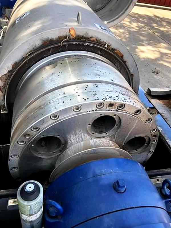 Max bowl speed 3000, 2554 x G, 20 x 76" bowl ID, 360 degree cake ports, epicentric liquid plate dams, 5" single lead STC-tiled conveyor, 150 HP motor 460/3/60/1780 RPM, 40 HP backdrive, P90 49:1 gearbox, feed tube, guards, vibration switch/isolators and chutes. 2015 vintage. Used only 8 hours; excellent condition. Equivalent to Sharples P4800 or PM-50,000.