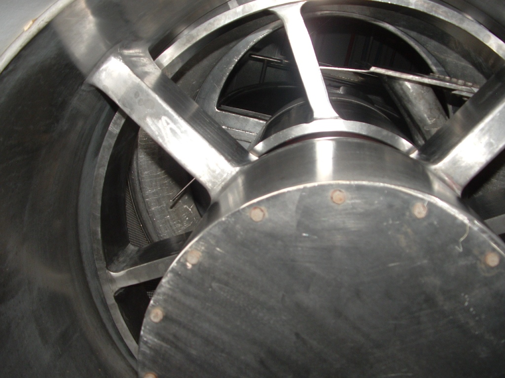 The Western States Q-250 Quadramatic 48 x 24 perforate basket centrifuge, Hastelloy C-276, is engineered for high-performance separation processes in various industrial applications. With a maximum bowl speed of 1000 RPM and a force of 681 x G, this centrifuge is designed to efficiently handle a wide range of materials, ensuring optimal separation and clarity of the final product. The bottom dump configuration allows for easy and effective discharge of solids, while the nitrogen purge design enhances operational safety by minimizing the risk of oxidation and contamination during processing. This makes the Q-250 particularly suitable for industries that require stringent quality controls, such as pharmaceuticals, chemicals, and food processing.