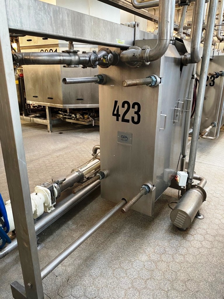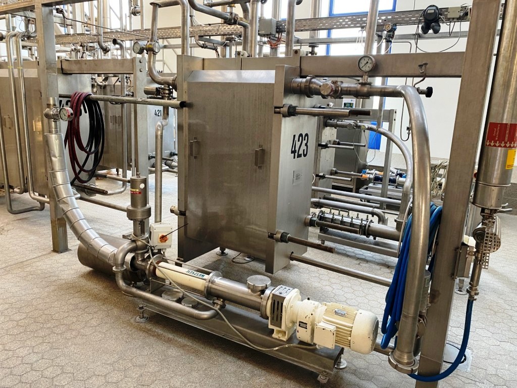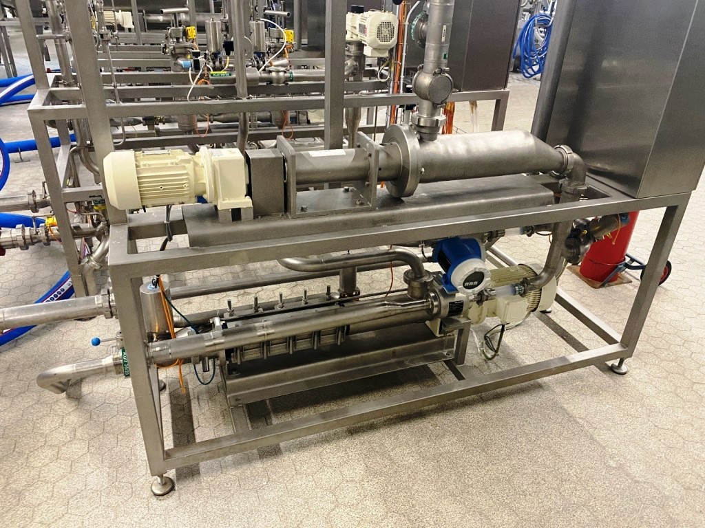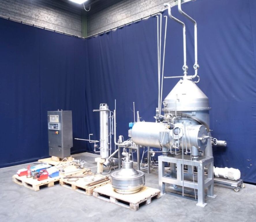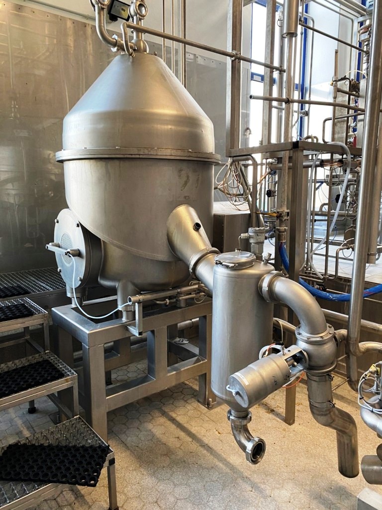 Max bowl speed 4900 RPM, rated @ 6600 LPH fresh cheese, 3300 LPH cream cheese, 45 KW motor 380/3/50/1470 RPM, valve block, Miromatic cream dosing and mixing station, Netzsch quark pumps, GEA plate heat exchanger (cooler), water harness, yogurt hopper, tools, PLC/HMI control panel and all piping. 2000 vintage. Excellent condition. FCA Europe.
