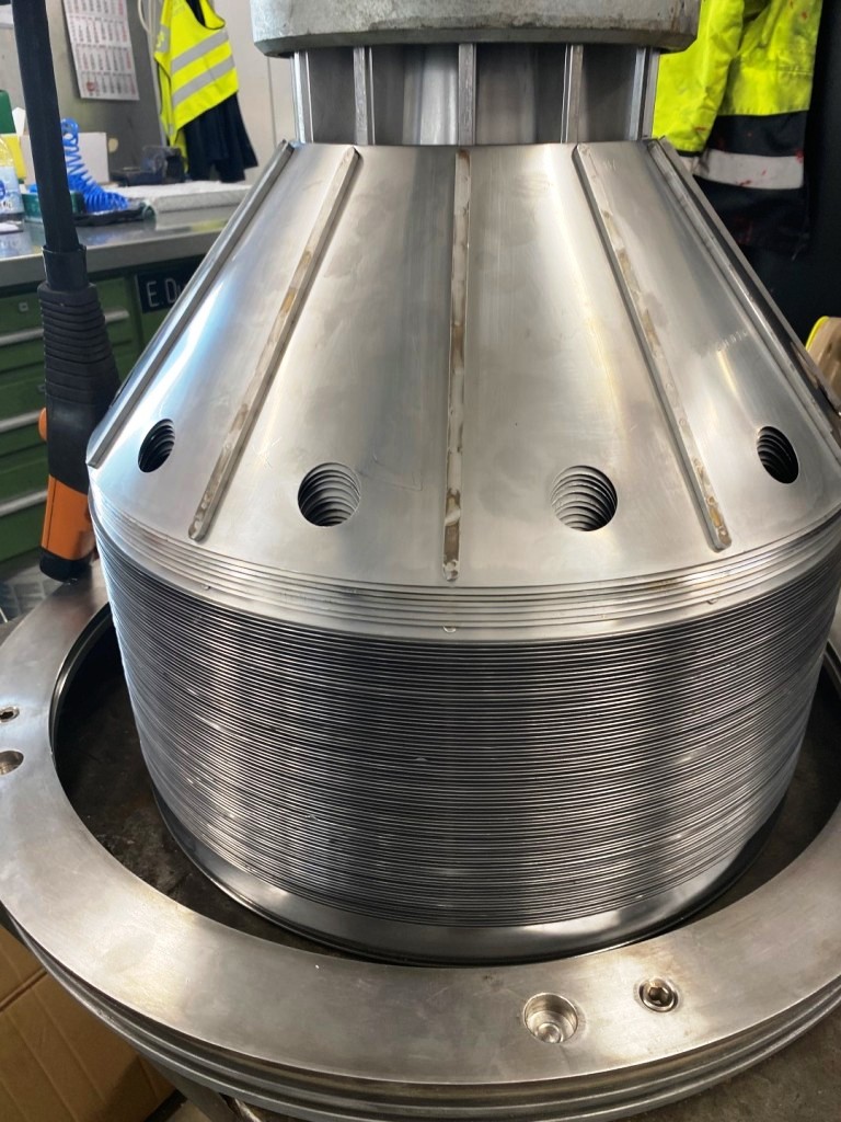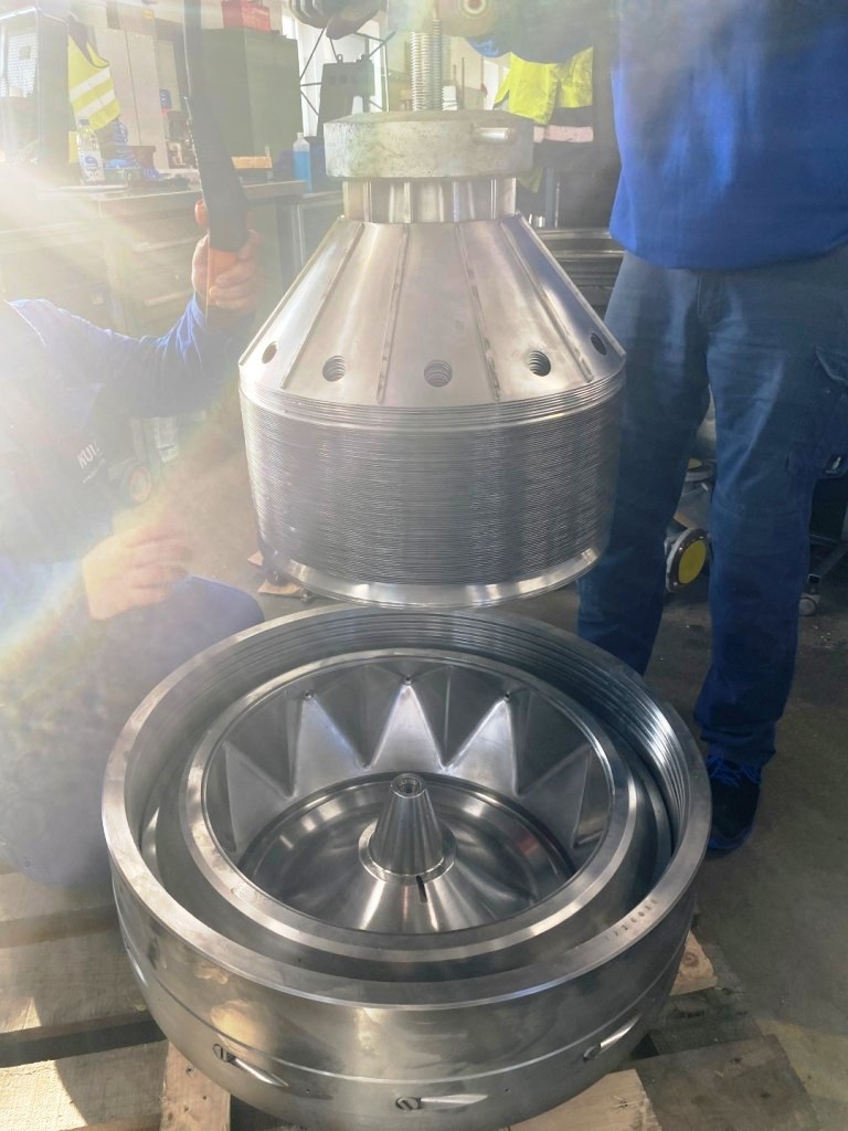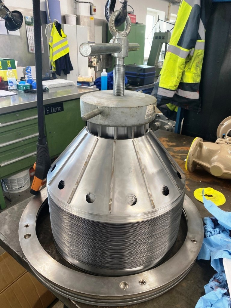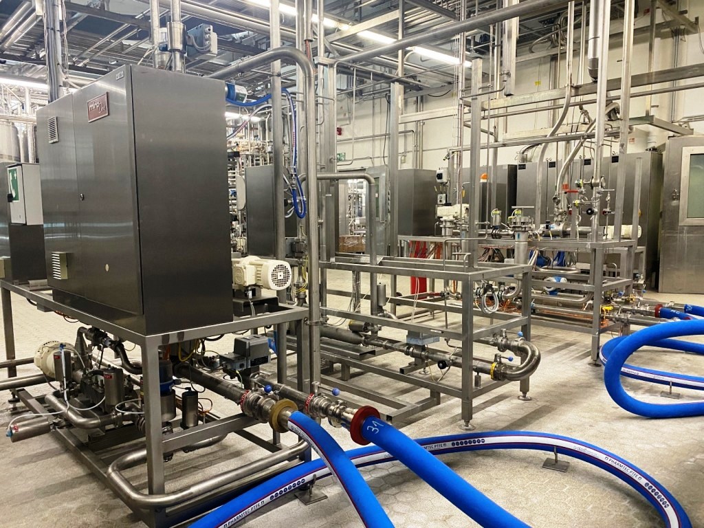 Max bowl speed 4900 RPM, rated @ 6600 LPH fresh cheese, 3300 LPH cream cheese, 45 KW motor 380/3/50/1470 RPM, valve block, Miromatic cream dosing and mixing station, Netzsch quark pumps, GEA plate heat exchanger (cooler), water harness, yogurt hopper, tools, PLC/HMI control panel and all piping. 2000 vintage. Excellent condition. FCA Europe.