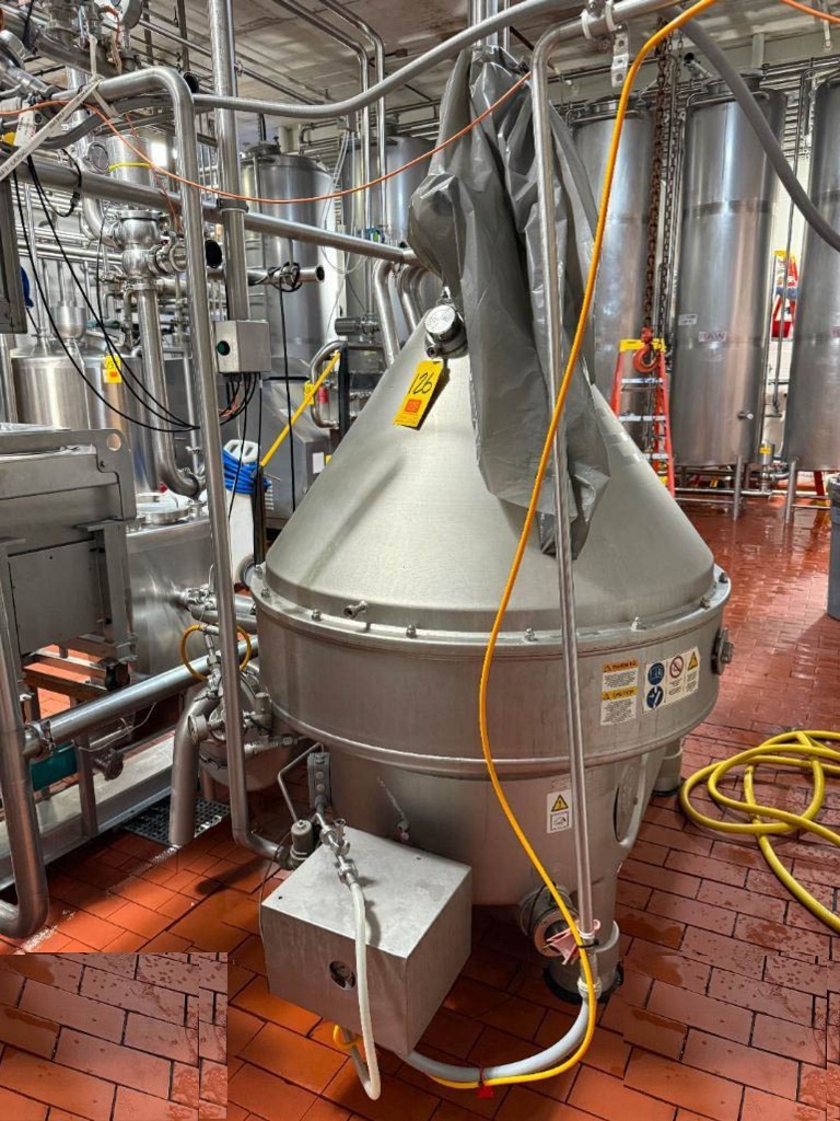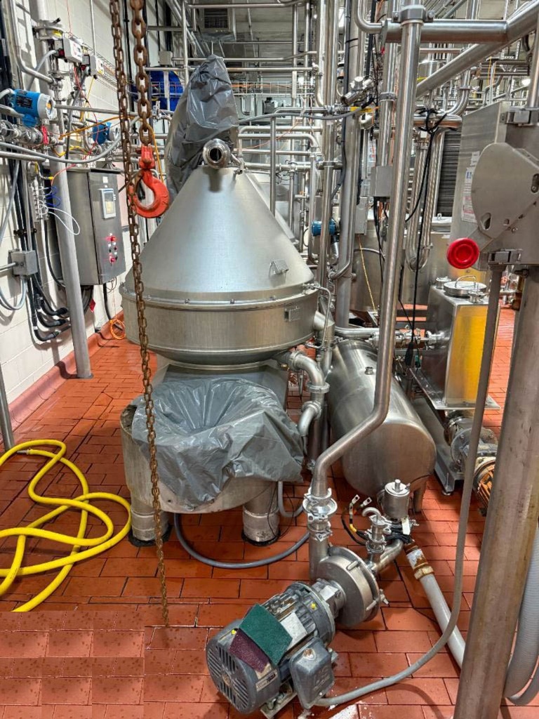 Max bowl speed 4800 RPM, rated @ 4500 LPH, 60 KW motor 460/3/60/1750 RPM, balance tank, flow meter, water harness, PLC control panel with Allen-Bradley PanelView Plus 1000 touch screen HMI, Fristam FPX 3541 centrifugal pump, all interconnecting pipes and valves. 2017 vintage. Very good condition. ***MISSING MOTOR***
