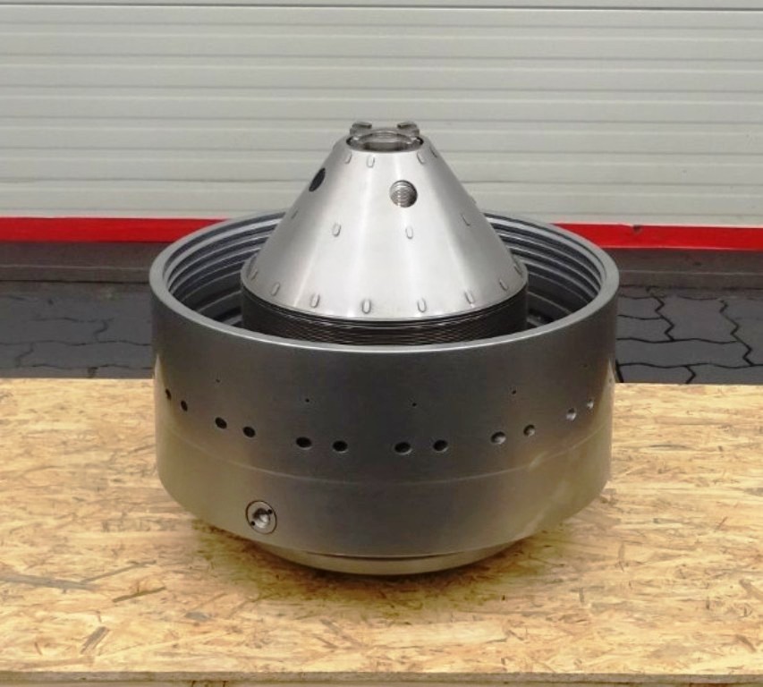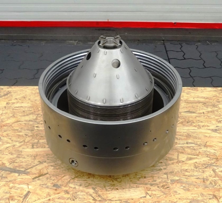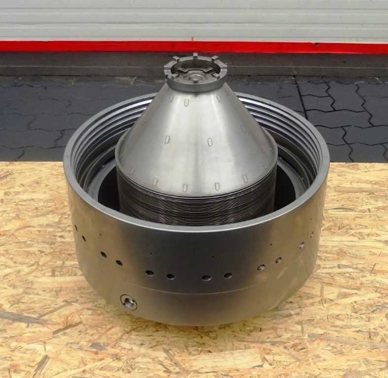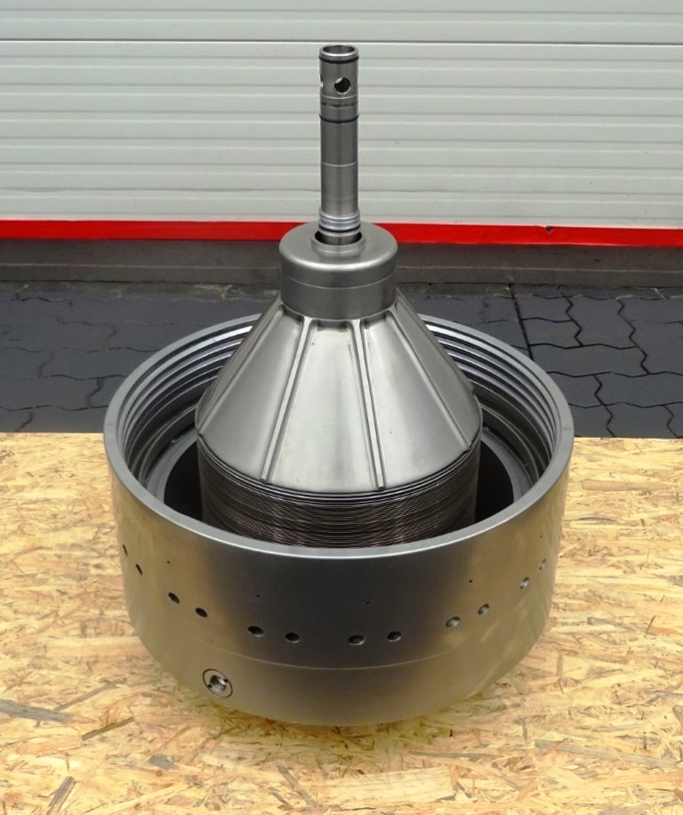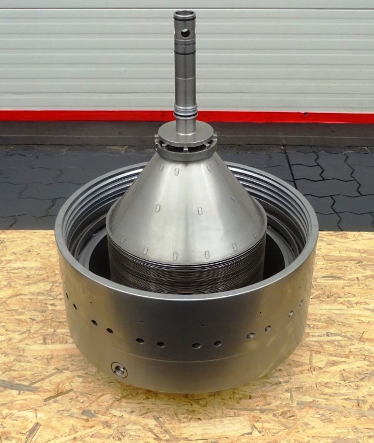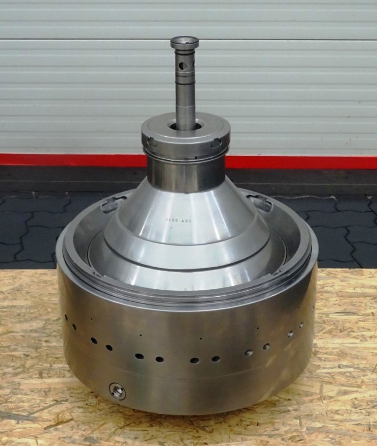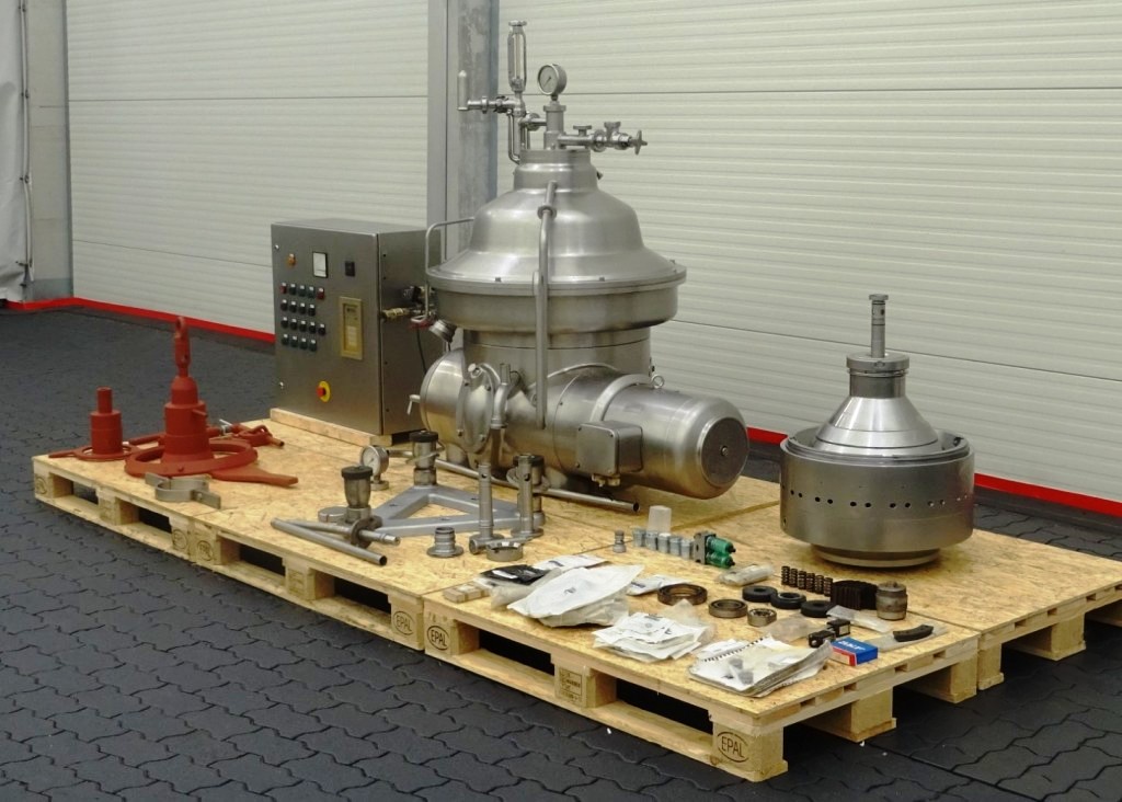 Max bowl speed 6550 RPM, rated @ 5000 LPH milk or whey. 15 KW motor 380/3/50/1450 RPM, base frame, water valves, inlet/outlet pipes with flow indicator, tools and control panel. 1986 vintage. Very good condition. Located in Europe.