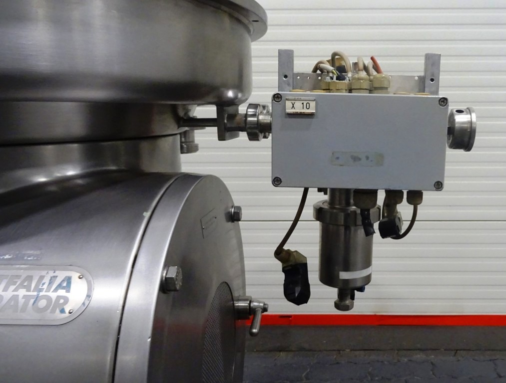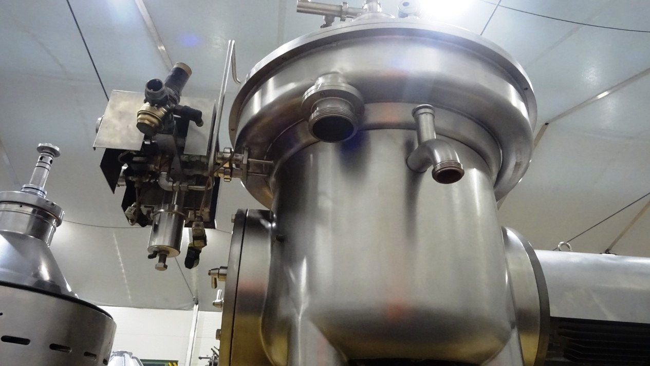 The Westfalia MSD 130-01-076 warm milk separator, 316 SS. is engineered for optimal performance in dairy processing applications. With a maximum bowl speed of 5920 RPM, this separator is capable of efficiently skimming milk at a rated capacity of 15,000 liters per hour (LPH). For more demanding tasks such as milk cleaning or standardization, it can handle up to 22,500 LPH, making it an essential piece of equipment for any dairy facility aiming to enhance product quality and operational efficiency. The robust 30 KW motor, compatible with 200/3/50/60 power configurations, ensures reliable operation even under continuous use, while the inclusion of water valves and all necessary inlet/outlet pipes with pumps facilitates seamless integration into existing production lines.