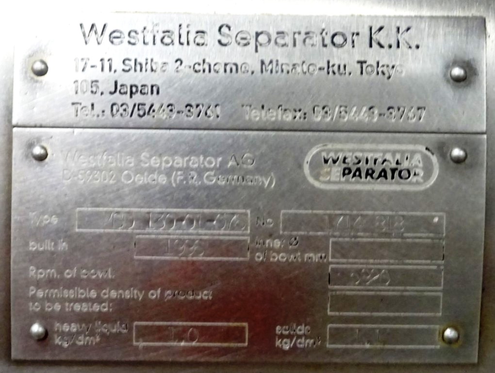 In addition to its impressive performance specifications, the Westfalia MSD 130-01-076 warm milk separator is designed with user convenience in mind. The unit comes equipped with flow indicators and sample valves, allowing operators to monitor and adjust processes in real-time for optimal results. The base plate with feet ensures stability during operation, while the included tools and manual provide everything needed for installation and maintenance. This separator, vintage 1996, has been maintained in very good condition, making it a reliable choice for businesses looking to invest in high-quality dairy processing equipment. Its stainless steel construction not only guarantees durability and resistance to corrosion but also ensures compliance with hygiene standards, which is crucial in the dairy industry.