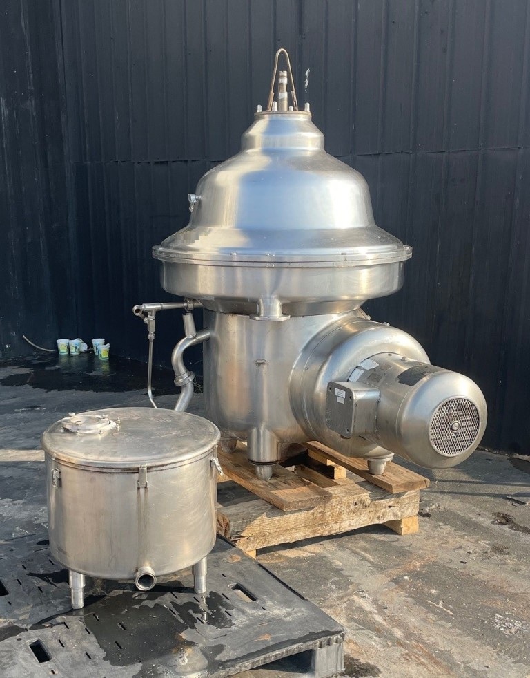 The Westfalia SAMM 12006 warm milk separator, 316SS. is engineered for high-efficiency skimming, making it an essential piece of equipment for dairy processing facilities. With a maximum bowl speed of 4500 RPM, this separator is capable of handling an impressive throughput of 15,000 liters per hour, allowing for rapid processing of warm milk. The robust 35 HP motor, operating at 230/460 volts and 3-phase, ensures consistent performance and reliability, even under demanding operational conditions. The inclusion of a solids tank and necessary tools enhances the functionality of this separator, making it a versatile choice for any dairy operation looking to optimize its milk processing capabilities.