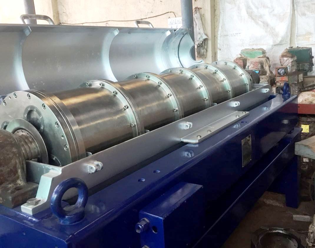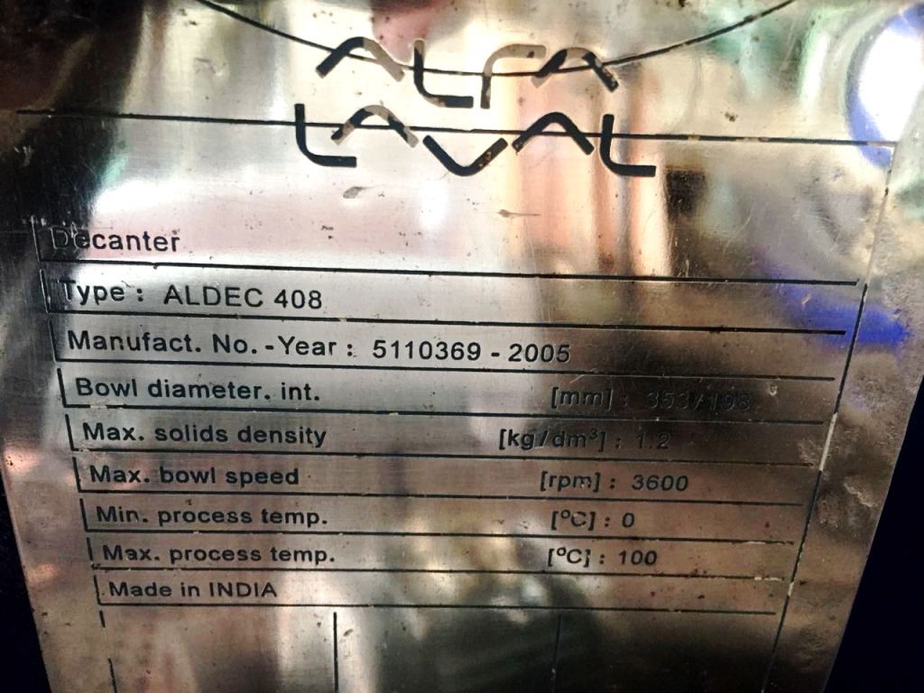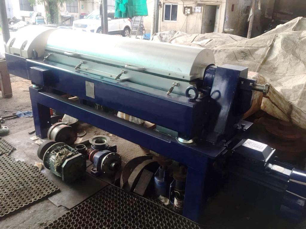 Max bowl speed 3600 RPM, 2515 x G, 353 x 1760mm bowl ID (14 x 69") 10 deg beach angle, 110mm single lead hard- surfaced conveyor, 22 KW motor 380/3/50, 15 KW backdrive, 97:1 3.0 kNm gearbox, guards, polymer feed tube, vibration isolators/switch, unitized on a stand with chutes. 2005 vintage. Excellent condition. FCA India.