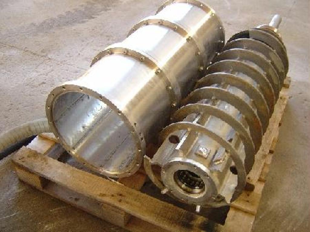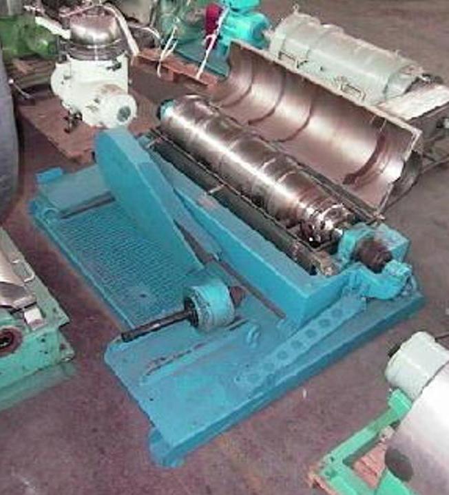 Max bowl speed 4000 RPM, 3100 x G, 14 x 46" (353 x 1160mm) bowl ID, 20 deg beach angle, 70mm single lead STC-tiled conveyor, 159:1 2.5 kNm gearbox, 30 KW motor 380/3/50, 4 KW backdrive, guards, feed tube vibration switch/isolators. Very good condition. Located in Europe.