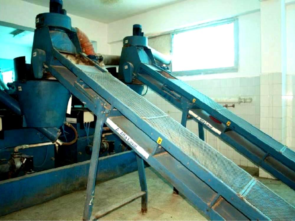 Fully automated plant includes (2) Alfa-Laval UVPX 510 separators, Alfa-Laval NX 934 decanter, (2) inclined belt conveyors, (2) hydraulic super washers, SS auger, hammer mills, (3) horizontal jacketed mix/blend vessels plate heat exchanger with pump and controls. 1996 vintage. Excellent condition. FCA Middle East.