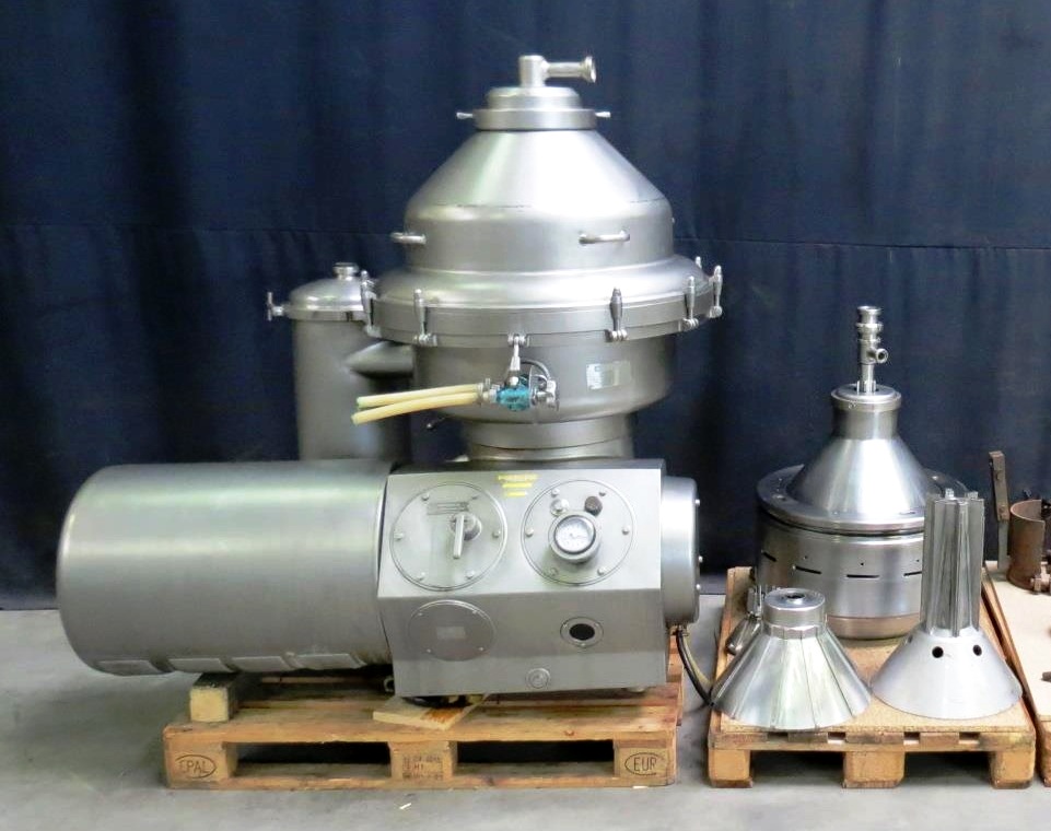 Max bowl speed 5000 RPM, rated @ 15,000 LPH. 22 KW motor 380/3/50/1450 RPM and tools. No base frame, no control panel, no counter pressure valve, no flow indicator and no manual flow regulation valve for cream. 1974 vintage. Excellent condition. FCA Europe.