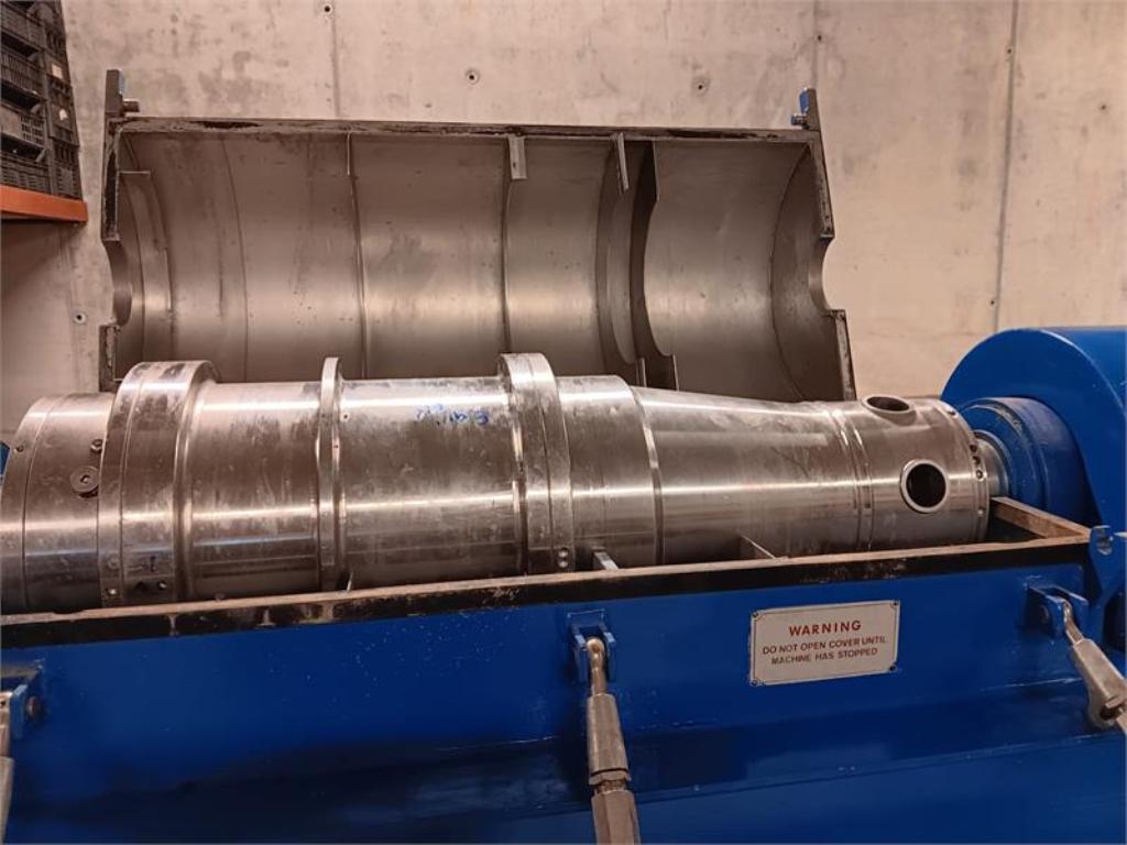 Max bowl speed 5600 RPM, 4000 x G, 9.2 x 27.6", pump on liquid discharge, 3.5" double lead hardsurfaced conveyor, 15 KW motor 380/3/50/2910 RPM, cake vibrator, 25:1 cyclo gearbox, feed tube, guards and vibration isolators/switch unitized on a stand with chutes and control panel. Very good condition. Located in Europe.