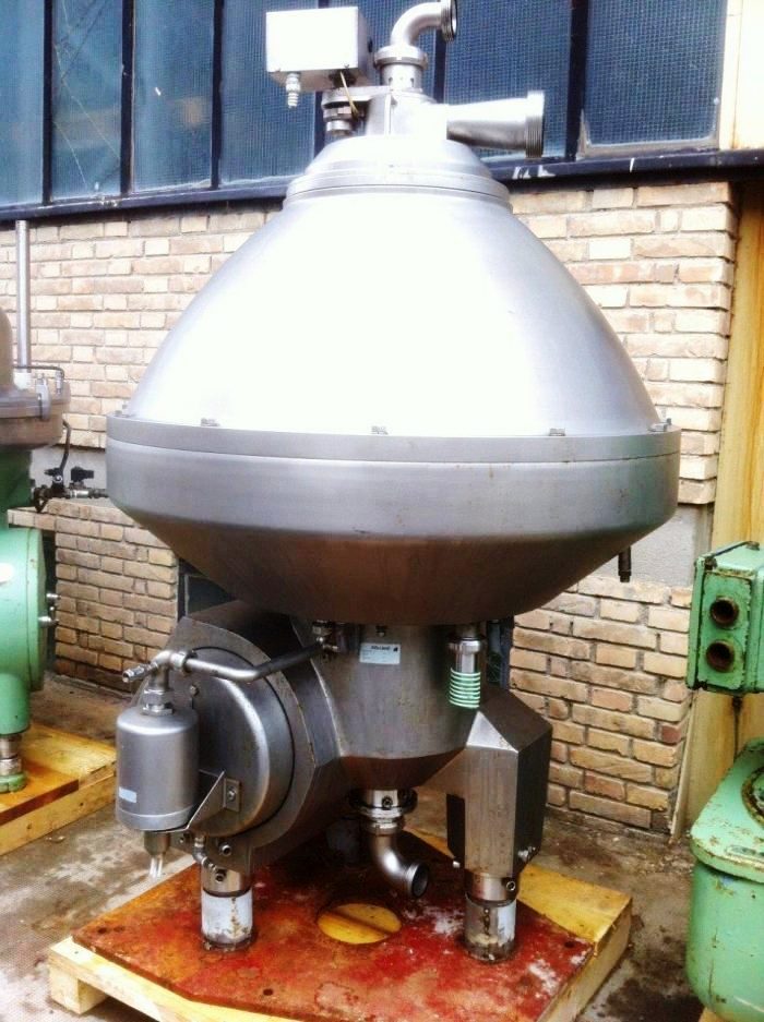 Max bowl speed 4300 RPM, rated @ 34,000 kg/h, adjustable paring tubes on heavy phase, 37 KW motor 380/3/50/1500 RPM, sludge collection tank, water harness, base plate and tools. No controls. 2007 vintage. Excellent condition. FCA Europe.