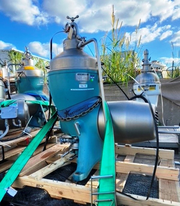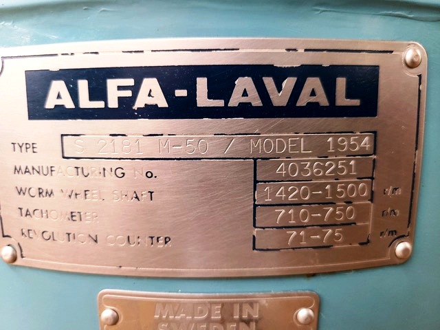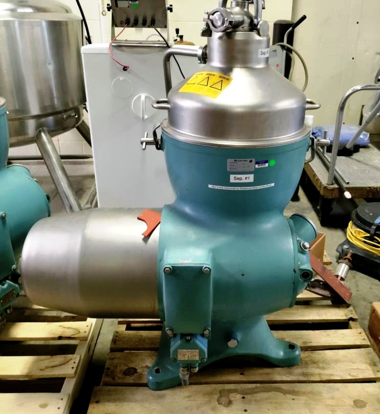 Max bowl speed 6810 RPM, rated @ 3500 LPH on warm milk, 1750 LPH on cold milk. 4 KW motor 220/380/3/50. Excellent condition. Equivalent to De Laval 372.