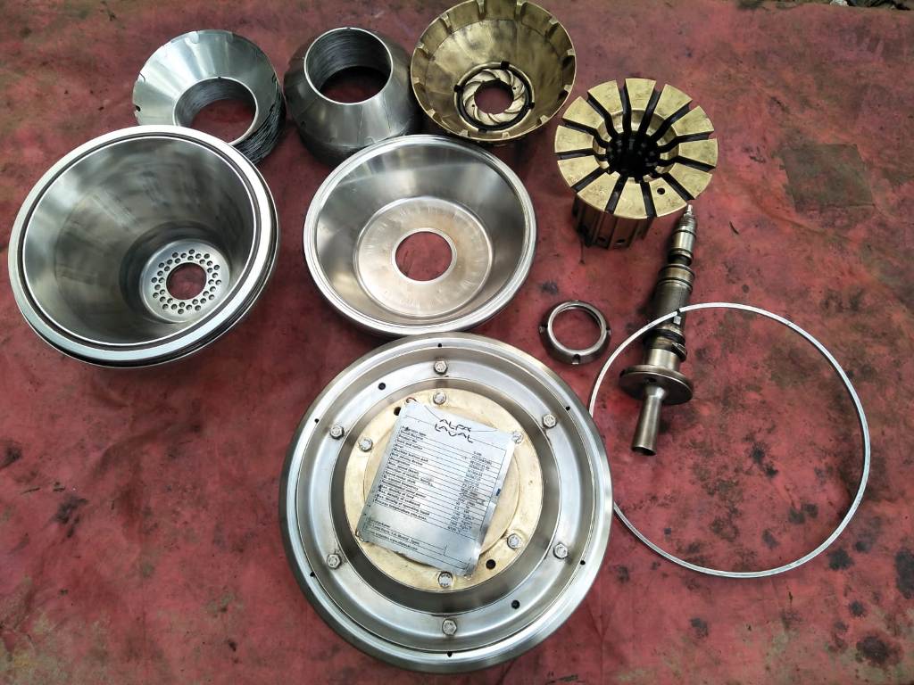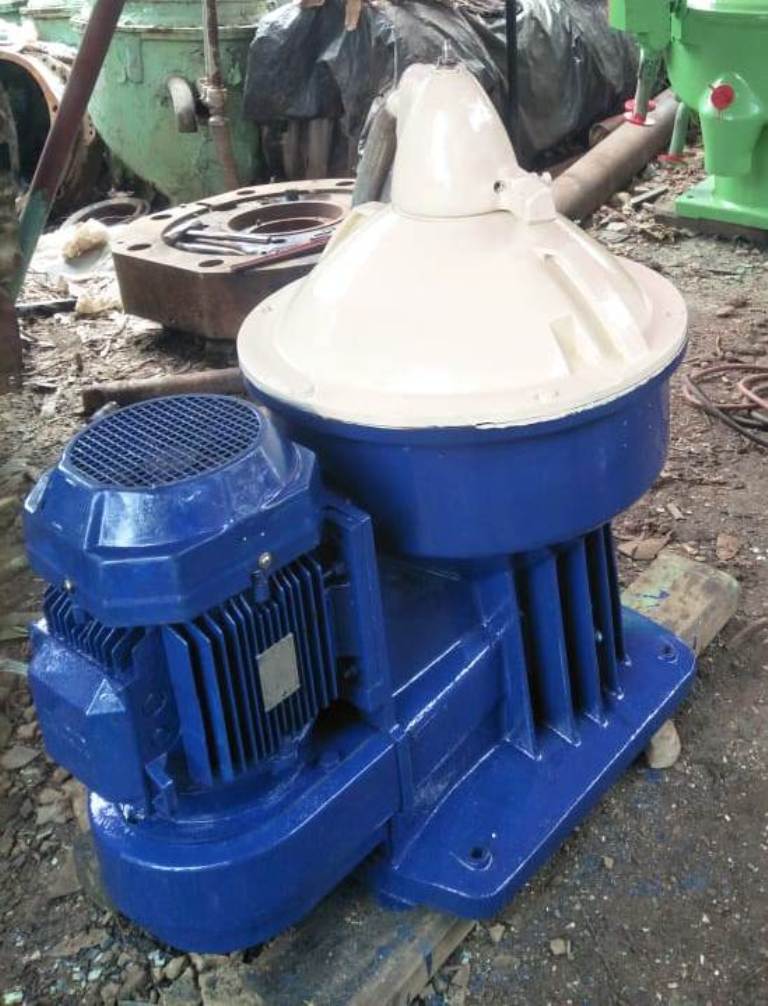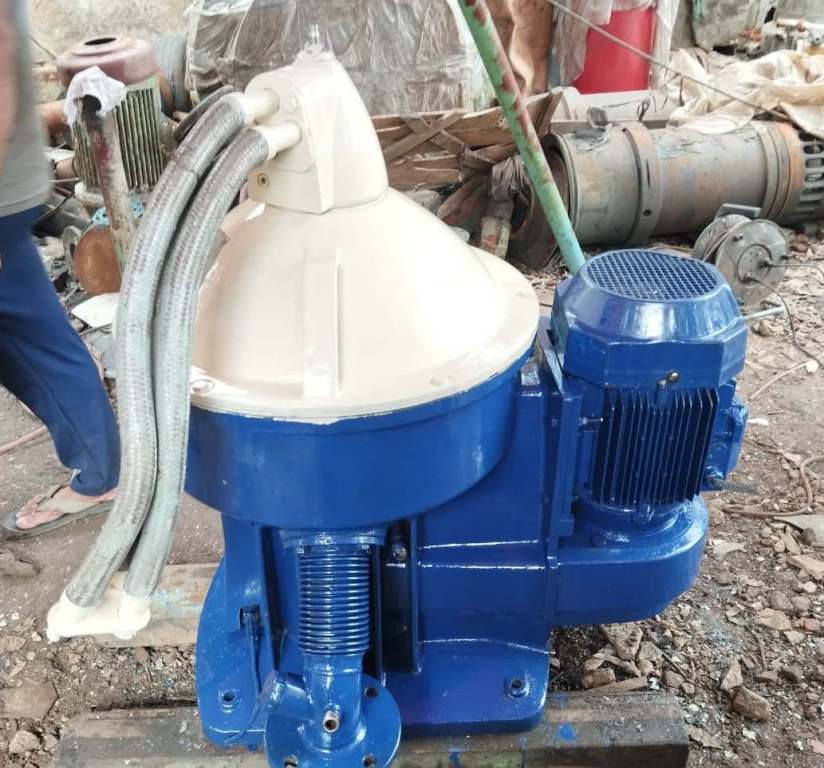 Max bowl speed 9220 RPM, both liquid phases discharged under pressure, rated @ 3500 LPH on light viscosity oil (380 cSt @ 50C). 9.5 KW motor 380/440/3/50/60/2840/3410 RPM. No tools or controls. 2002 vintage. Very good condition. Located in Bangladesh.
