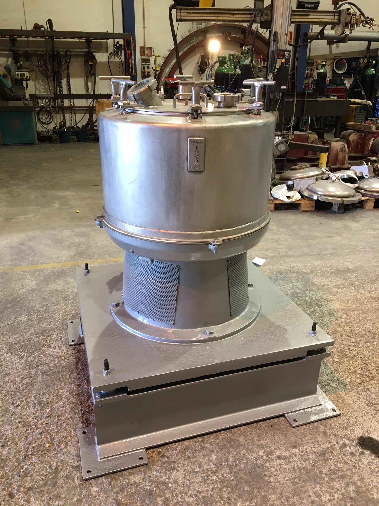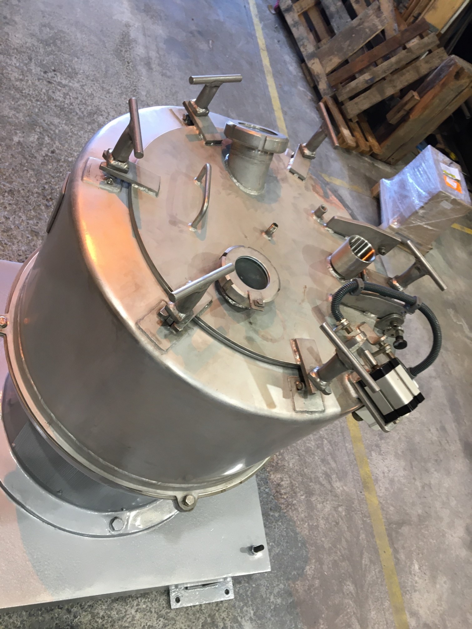 Max bowl speed 2000 RPM, 1340 x G, 600 x 345mm basket ID, volume 50 L, max load 60 kg. 5.5 KW motor 380/3/50. 2002 vintage. Reconditioned to "as new." FOB Europe.
