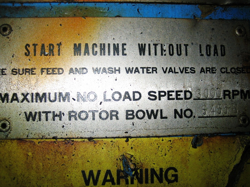 Max bowl speed 3000 RPM, rated @ 300 GPM, bronze casing, 317 SS bowl, 125 HP motor 460/3/60/1775 RPM, electric spindle oiler and belt guard. No controls. Prior use: Corn wet milling. 1984 vintage. Very good condition.