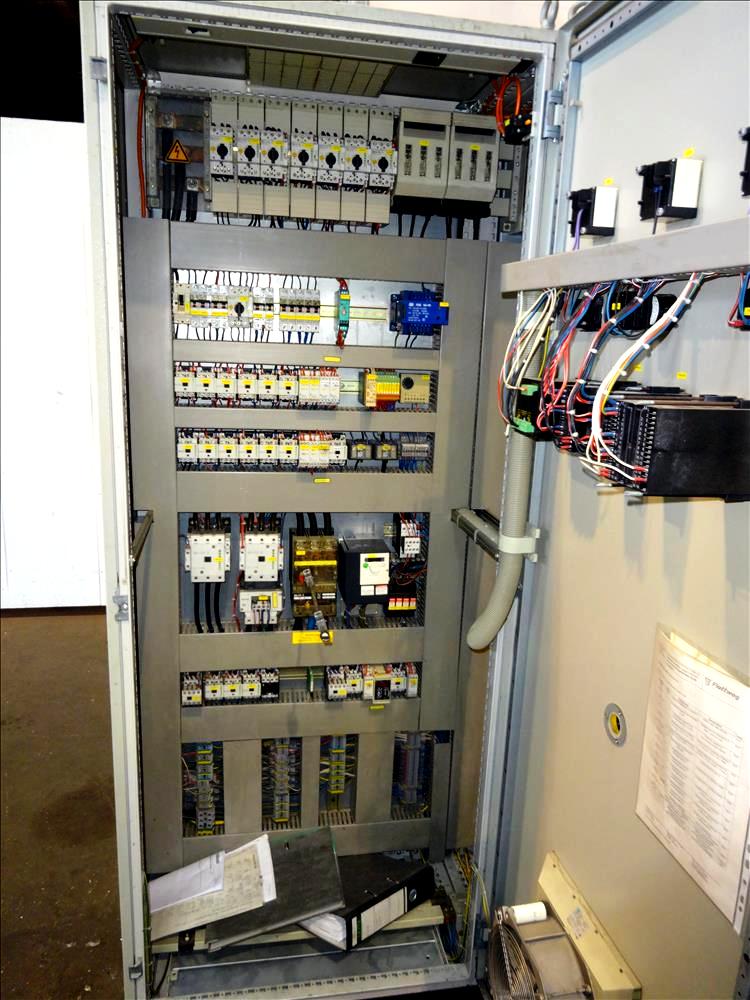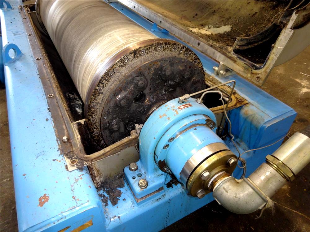 Max bowl speed 3500 RPM, 2900 G's, adjustable weir/arm. 5" single lead TC spray conveyor, 30 KW motor 400/3/50, Viscotherm hydraulic backdrive system, guards, lube system, feed pipe, vibration switch/isolators, chutes and PLC control panel. 1998 vintage. Excellent condition.