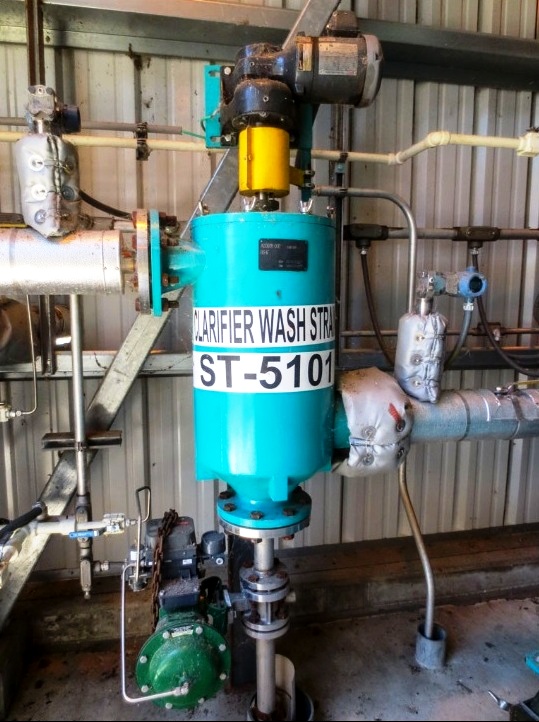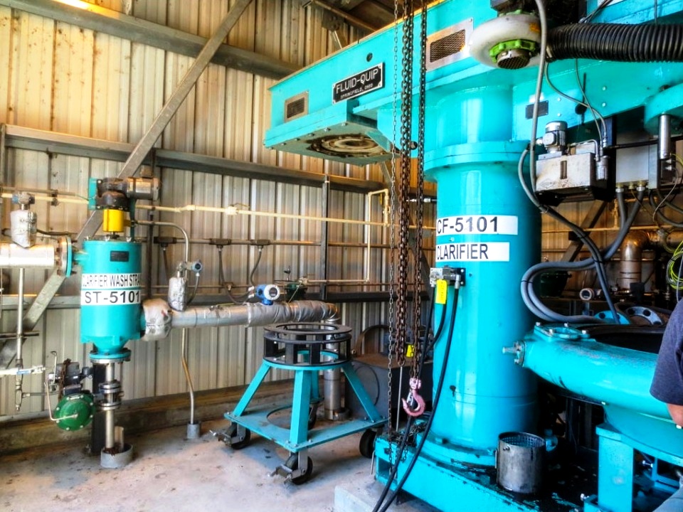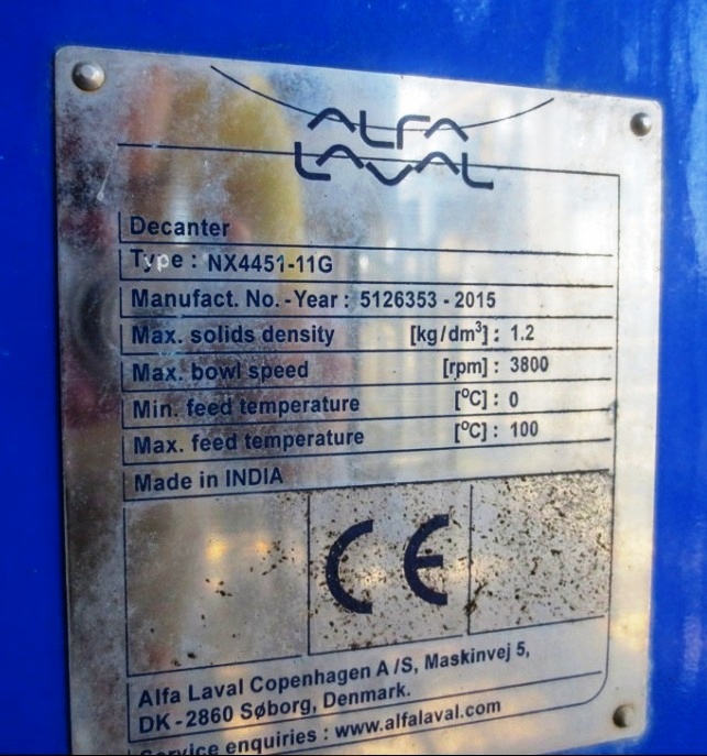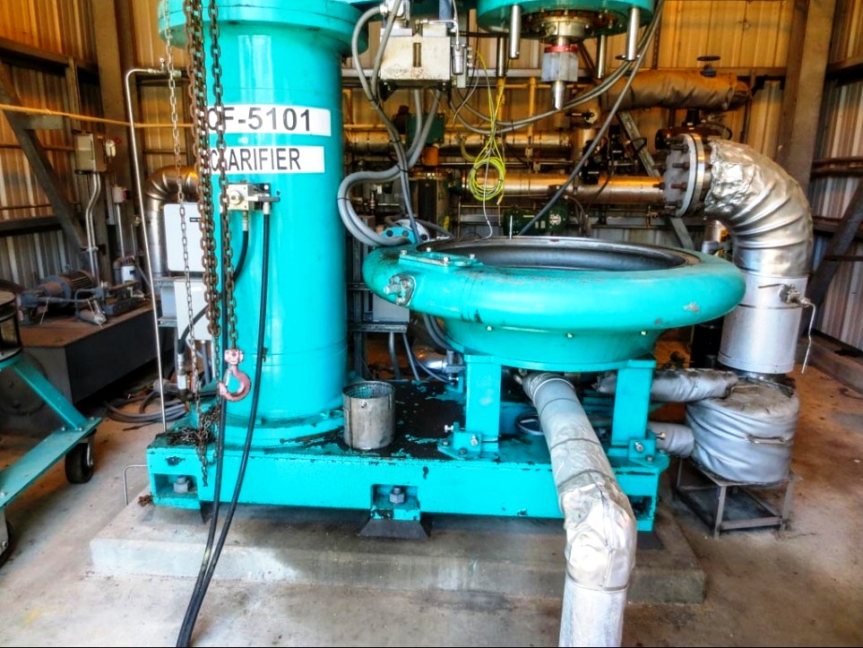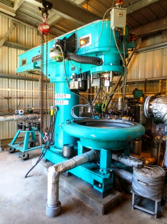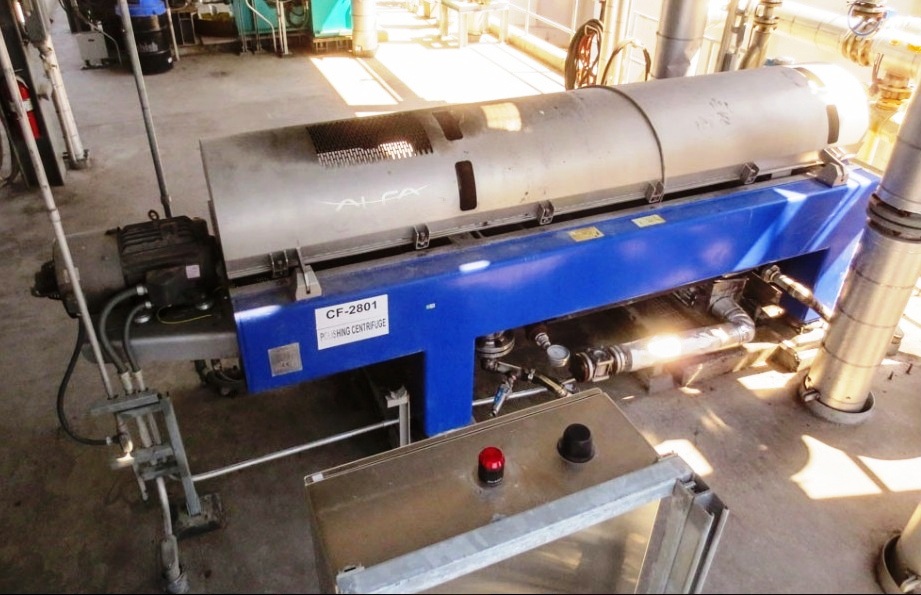 Designed to recover raw corn oil from the liquefaction slurry prior to fermentation. Rated @ 1 LB of corn oil per bushel. Includes FCQ-950T-E primary centrifuge, rated @ 1500 GPM (340 CMPH), FCQ-950M-BF clarifier centrifuge, both with Triton pumps and strainers, Alfa-Laval NX 4451-11G tricanter polishing centrifuge, (10) pumps, (8) tanks and a paddle screener. 2015 vintage. Very good condition.