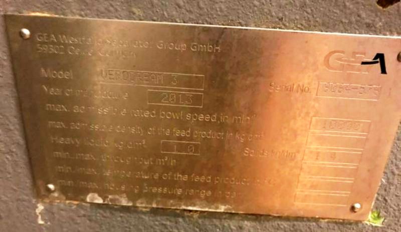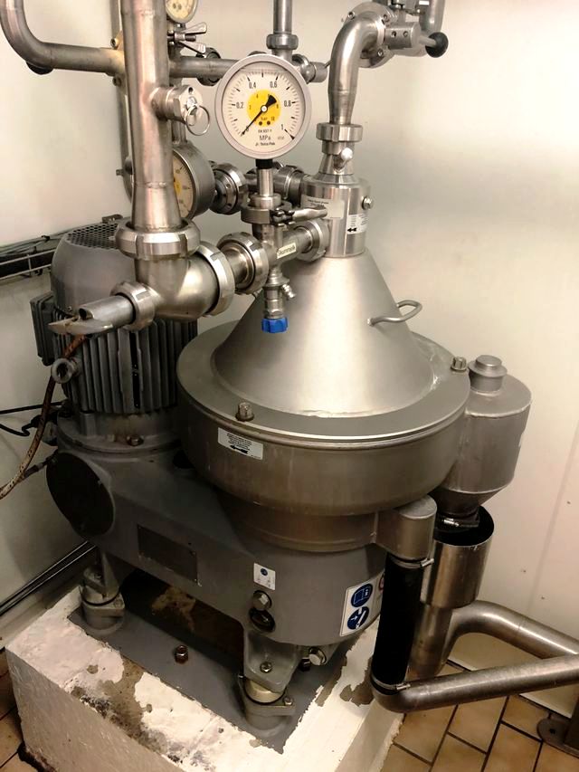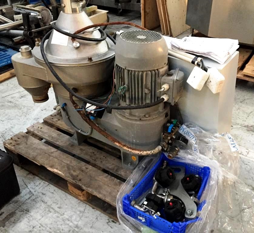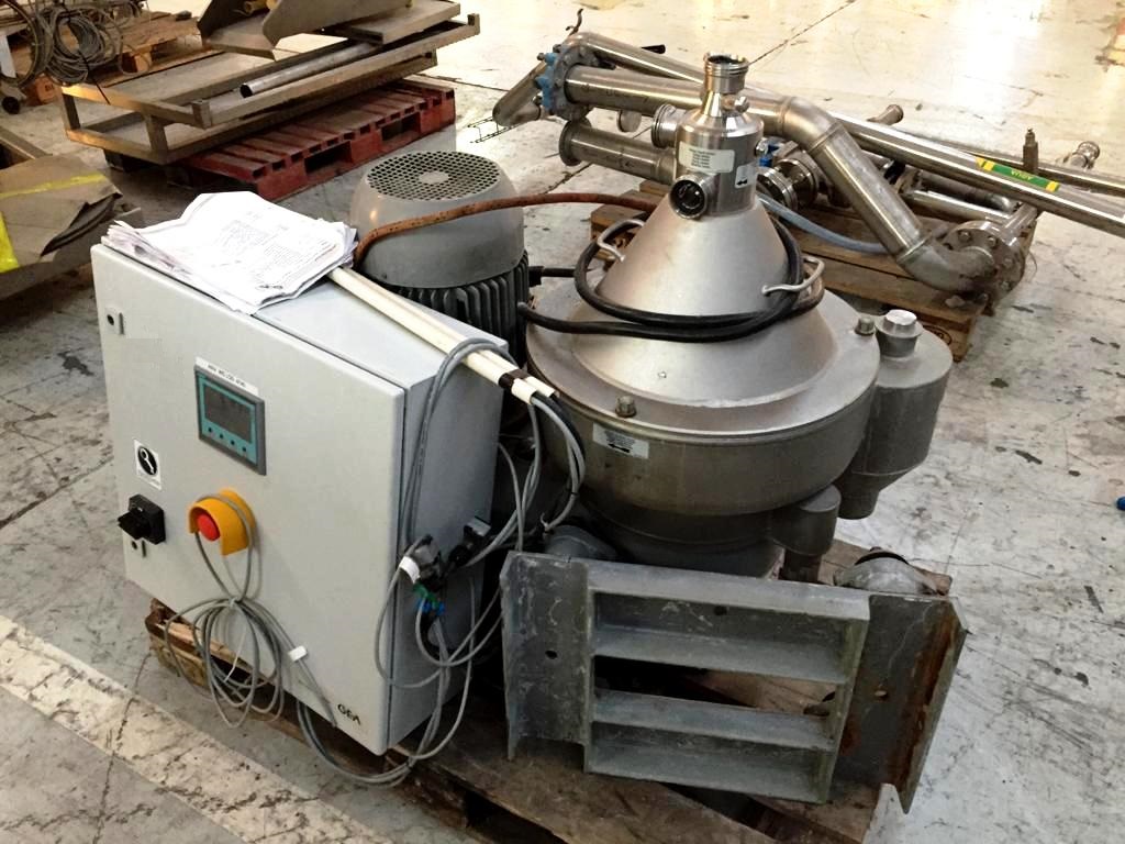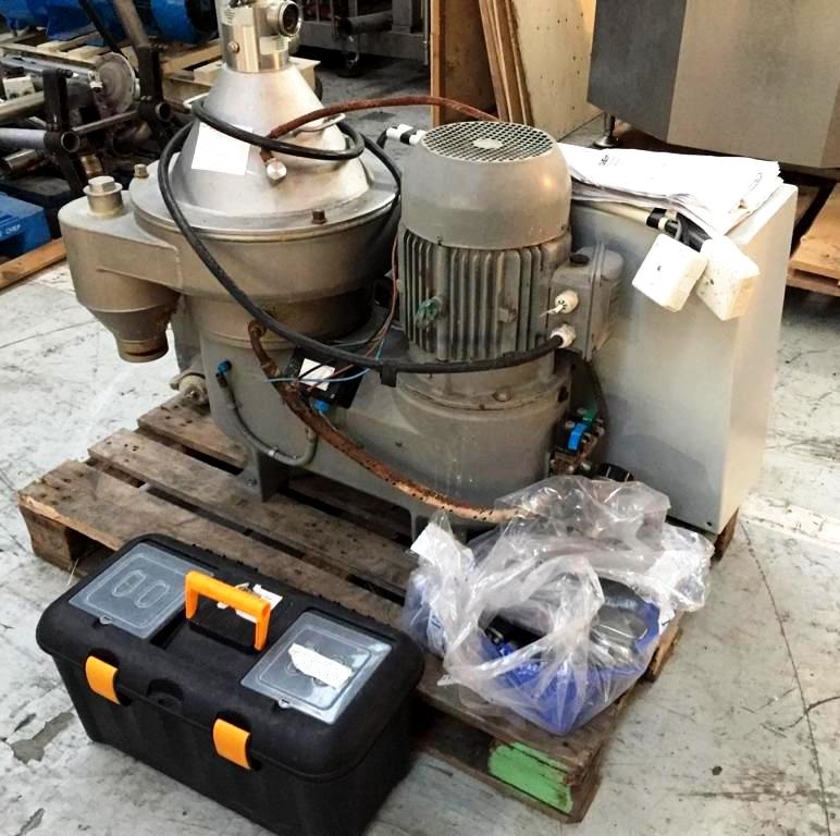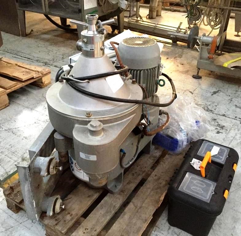 Max bowl speed 10,000 RPM, rated @ 1000-5000 LPH, 1.4 L solids cap, 1 bar feed pressure, 3 bar discharge, both liquid phases discharged under pressure, 7.5 KW motor 230/380/3/50/60, base plate, tools, control panel and manual. 2013 vintage. Excellent condition. FCA Europe. Equivalent to MSE 20-01-177 and Verocream 3.