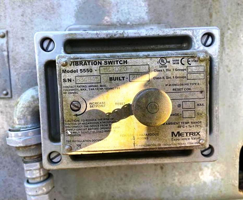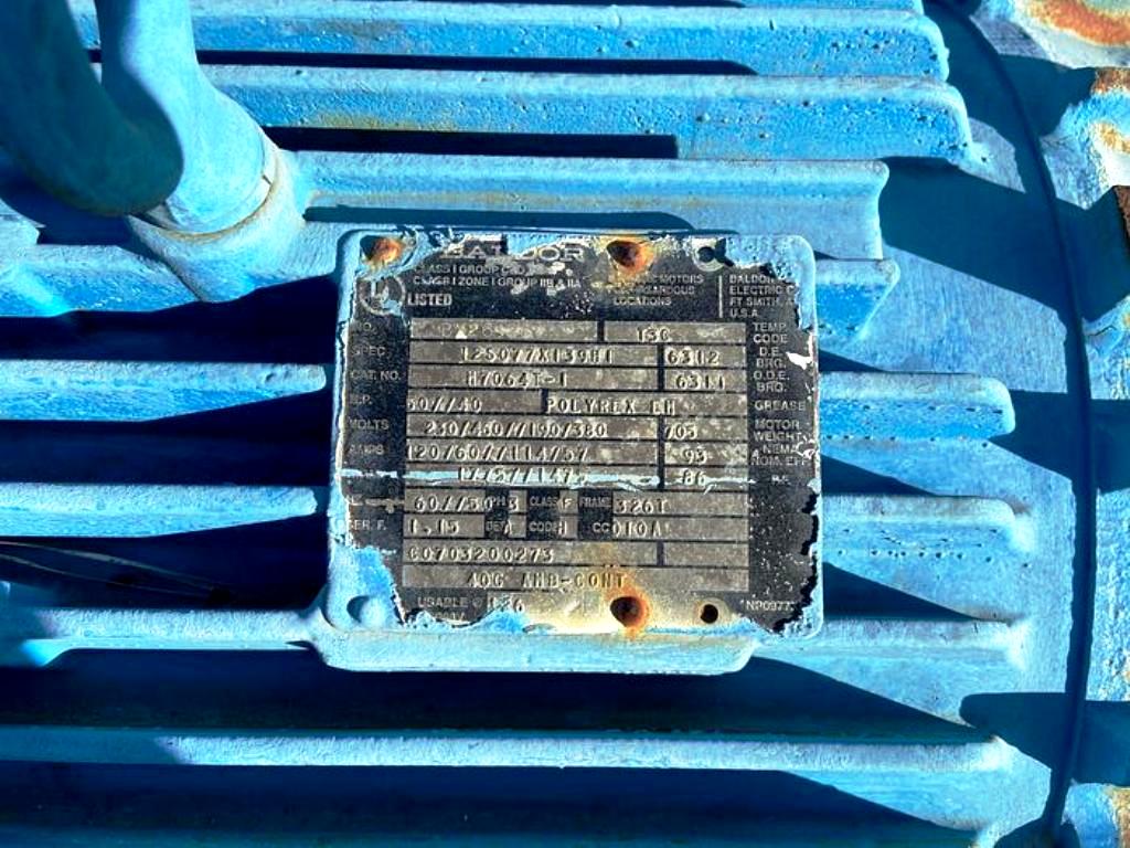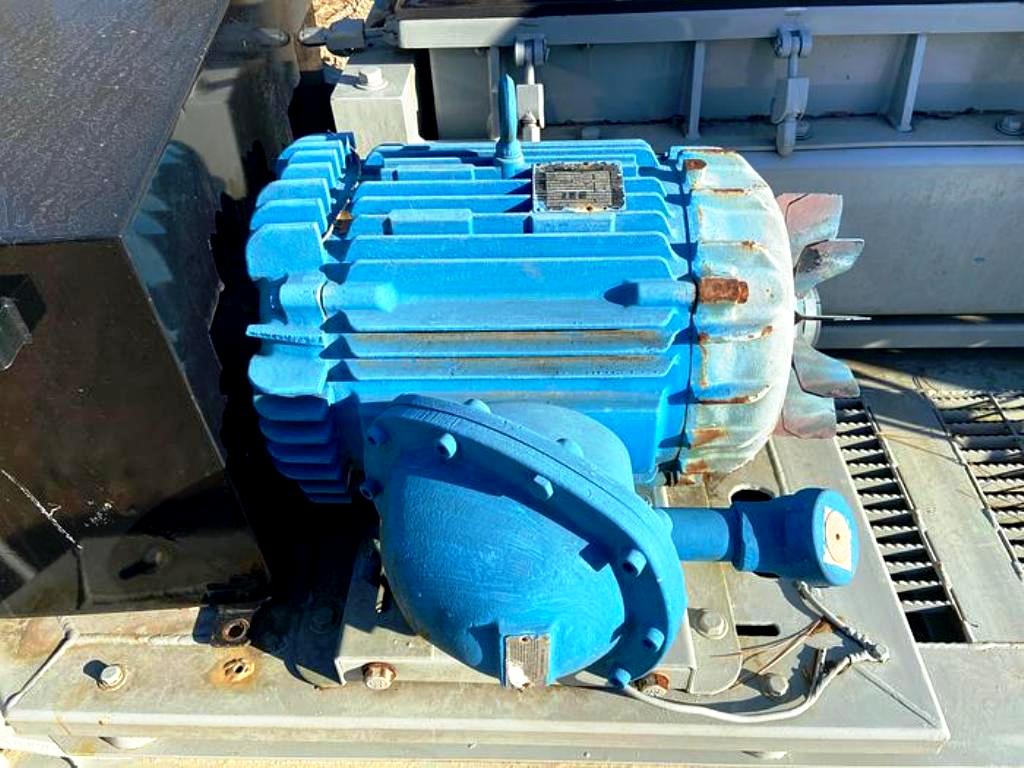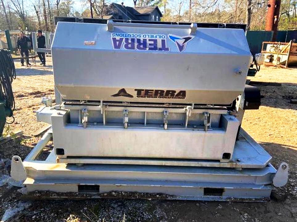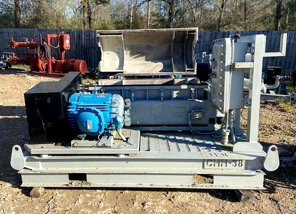 Max bowl speed 3700 RPM, adjustable liquid ports, hogged-out cake ports with wear liners and flingers. 4.25" single lead STC tiled conveyor, 50 HP XP motor 460/3/60/1750 RPM, 15 HP backdrive, 52:1 gearbox, feed tube, guards, vibration switch/isolators and XP control panel, unitized on oilfield skid. Very good condition.