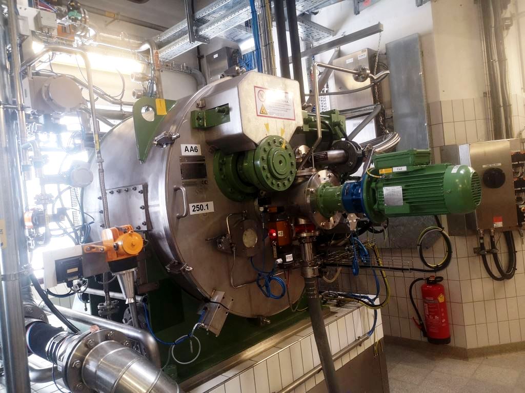 Max bowl speed 1520 RPM, 1280 x G, 2 sq m filter area, siphon design, discharge screw, feed pipe, wash pipe, gas purging of bearing seals, door interlock, vibration monitor, speedometer, hydraulic power pack and oil lubrication and 50 KW XP motor 380/3/50/1465 RPM. Prior use: Pharmaceutical. 1999 vintage. Excellent condition. FCA Europe.