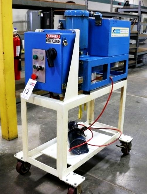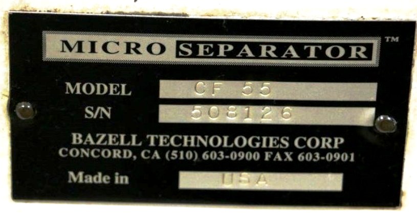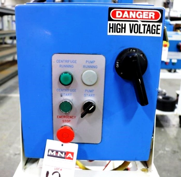 Max bowl speed 2200 RPM, rated @ 12 GPM, manual clean, 1.75 gal rotor volume, 430 cuin (7.6 L) sludge capacity. 304SS rotor, rubber liner, aluminum cover and casing, 2 HP motor 230/460/3/60/1750 RPM with control panel, unitized on a portable cart. 2011 vintage. Excellent condition.