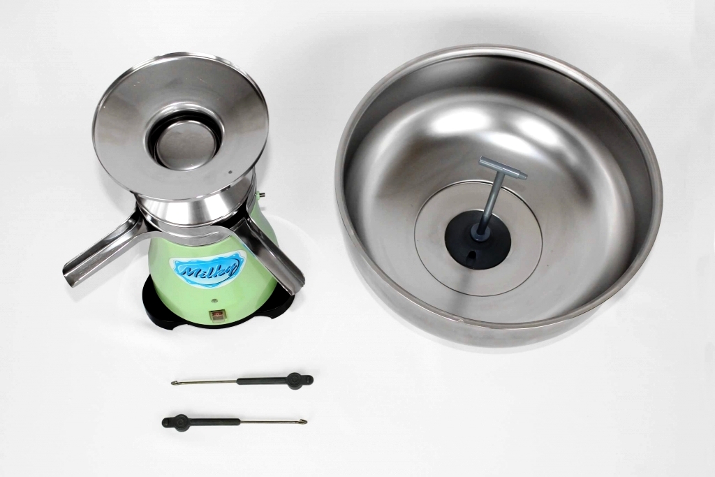 Rated @ 34 GPH (130 LPH). Feed bowl cap 3.17 G (12 L). Motor 115v/60Hz/70W. LED speed indicator. 21 anodized aluminum discs inside aluminum bowl. Durable plastic body. Fixing hooks insure stability of separator. Spare set of SS discs available - add $500. Also available in 230v/50Hz. FCA Europe.