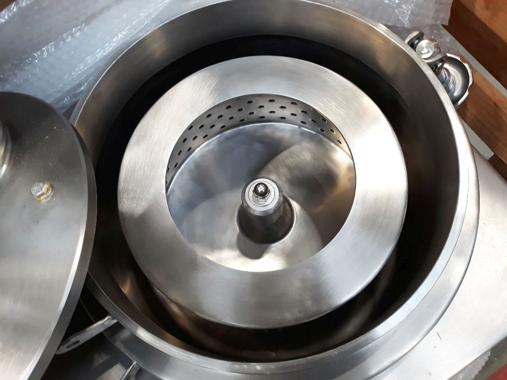 Equipped with a robust 2.2 KW XP motor, the Rousselet Robatel RC-30 Vx XP basket centrifuge operates on a versatile power supply of 220/380/3/50/60, making it adaptable to various industrial environments. The use of high-quality materials such as 316L stainless steel ensures durability and resistance to corrosion, which is essential for processing aggressive substances. The centrifuge also features PTFE gaskets and a PTFE spray nozzle, enhancing its chemical resistance and ensuring that the integrity of the processed materials is maintained. Additionally, the nitrogen blanketing system and hydraulic filtrate siphon contribute to the effective management of volatile compounds and the efficient removal of filtrate, respectively. The discharge membrane pump facilitates easy and controlled discharge of the processed materials, while the ATEX lamp ensures compliance with safety regulations in potentially explosive atmospheres. This unit, manufactured in 2017 and never used, is available FCA Europe, providing an excellent opportunity for buyers seeking reliable and high-performance centrifugation solutions.