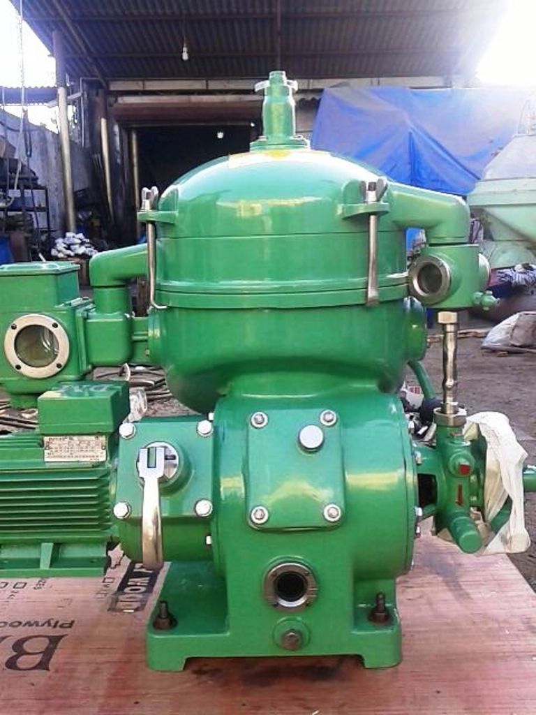 Consists of Mitsubishi SJ-700 self-cleaning separator, max bowl speed 9000 RPM, 1.5 KW motor 230/460/3/60/1775 RPM and feed pump. No tools. Module includes heat exchanger, sludge tank, control panel and many other components. System rated @ 2 GPM, max solids 0.5% by volume, temp range 60-150F. Sludge tank is 7'L x 4'W x 40"H. Very good condition.