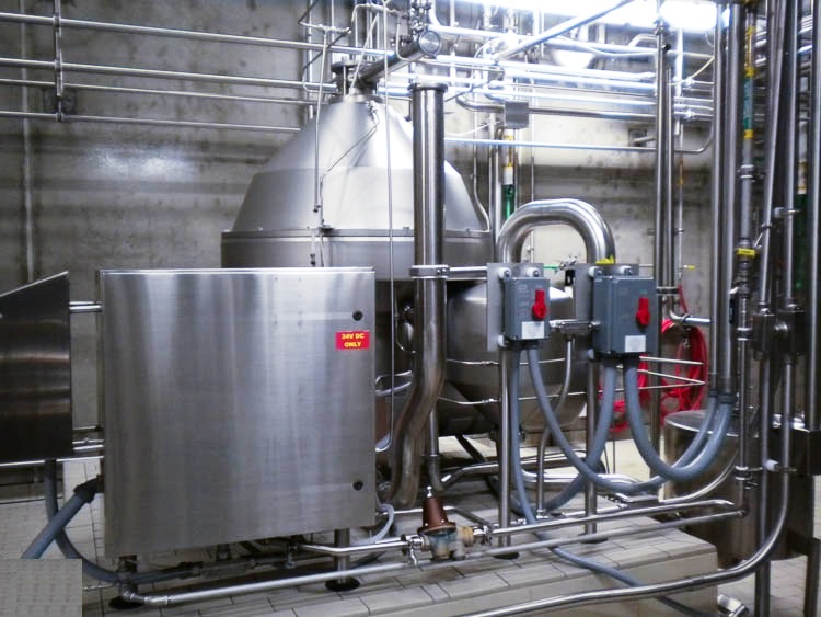 Max bowl speed 4265 RPM, rated @ 115,000 PPH on milk, 50 HP motor 460/3/60/1750 RPM, solids cyclone, tank, 2015 Allen-Bradley PLC & HMI controls, valve module, service module, tools & spare parts. Prior use: Dairy. 2005 vintage. Excellent condition.
