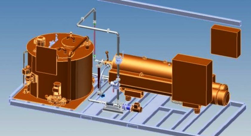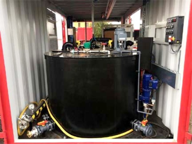 First stage pre-treatment tank with heating coils. 2nd stage pre-treatment tank w/heating coils & mixers. Two 7.5 KW suction transfer pumps. Pre-filter unit. Piping system and all connecting elements. Never used!