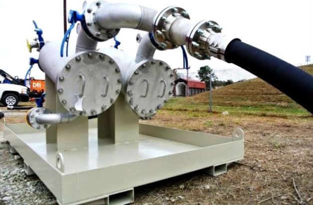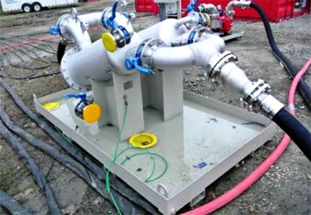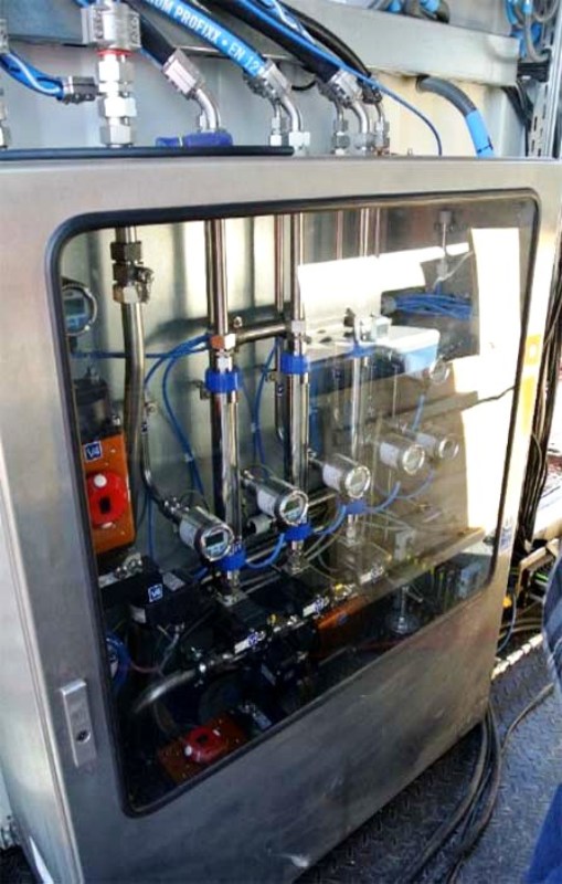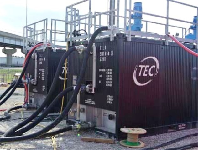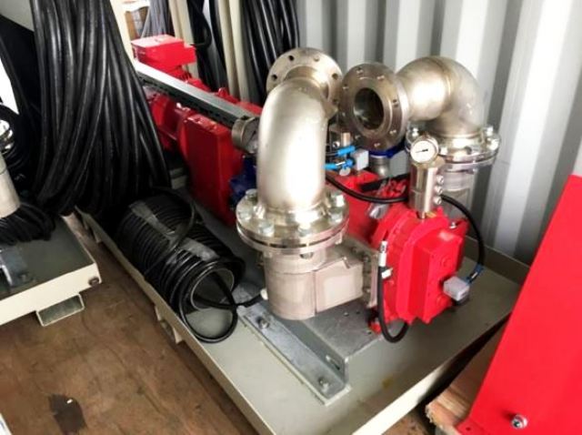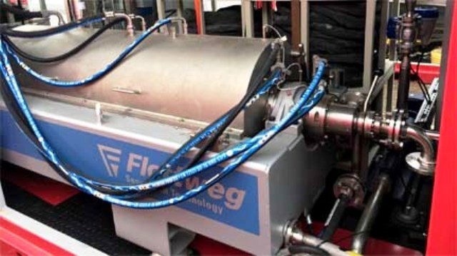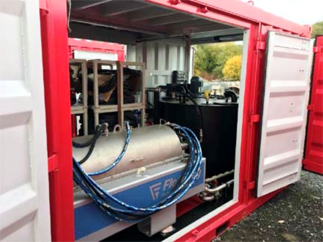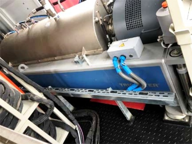 This compact/portable tricanter system is designed for up to 95% product recovery ready to be re-injected back into the refining stream line. The 3-phase separation system consists of 5 containers. Zone 1 is explosion-proof. Two UNUSED Flottweg Z4E-4/441G gastite tricanters. Power supply and control panels.