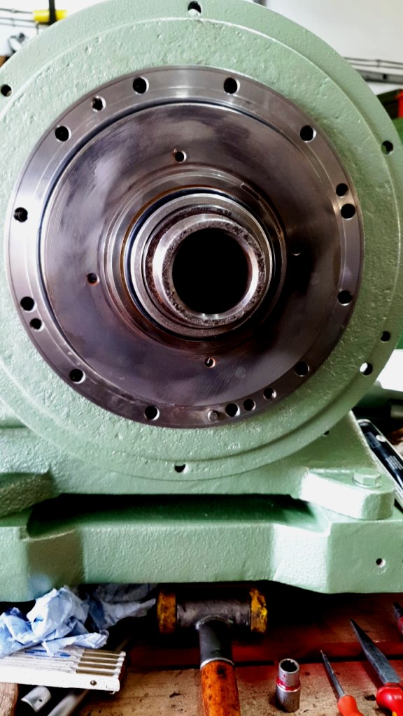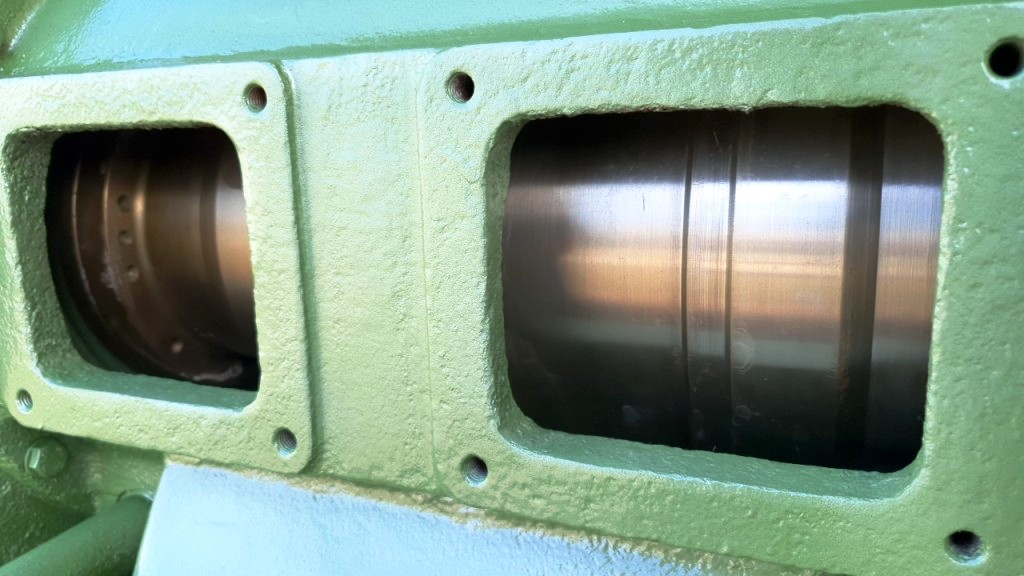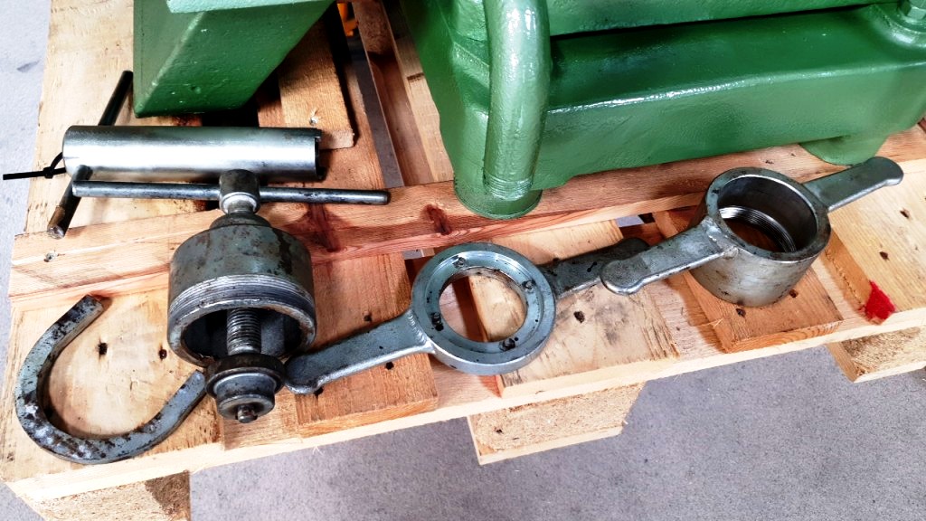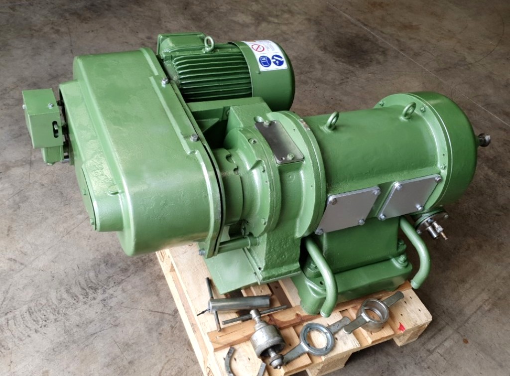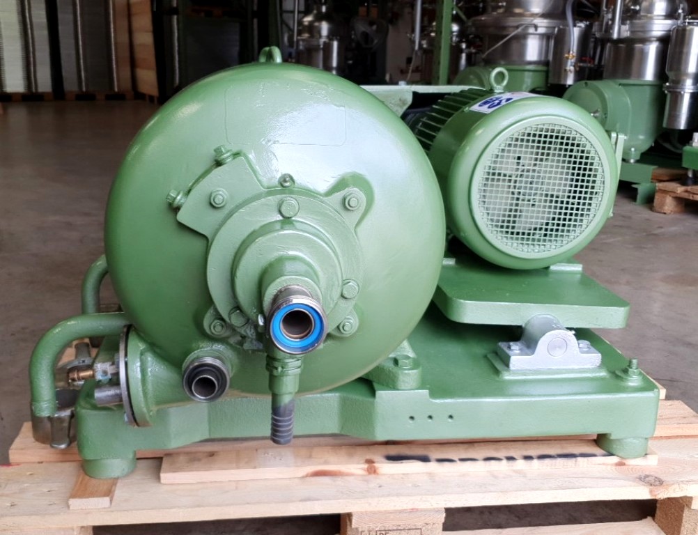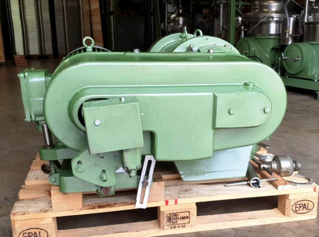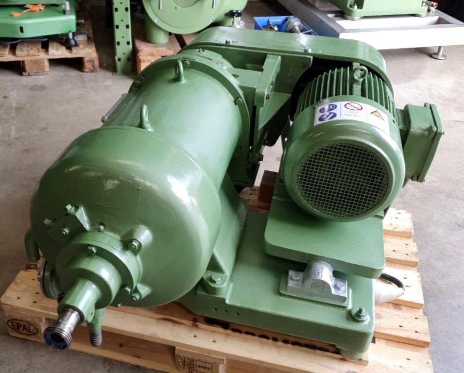 Max bowl speed 5100 RPM, flat angle bowl, wear liners on cake ports, pressure discharge of effluent. 1.5" single lead hardsurfaced conveyor, 11 KW motor 380/3/50, gearbox, feed tube and sub-base. Reconditioned. FCA Europe.