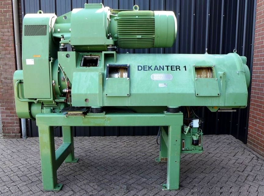 In addition to its powerful motor and gearbox, the Westfalia CA 505-01-12 decanter centrifuge features an 18.5 KW hydraulic backdrive, which allows for precise control over the conveyor speed and enhances the overall operational flexibility of the unit. This feature is particularly beneficial in applications where varying feed conditions may require adjustments to the conveyor speed to optimize separation performance. The feed tube and guards are designed to facilitate safe operation while minimizing the risk of contamination, ensuring that the integrity of the processed materials is maintained. Mounted on a sturdy stand, this centrifuge is not only easy to integrate into existing production lines but also offers stability during operation. Being a 1988 vintage model in very good condition, it represents a reliable investment for businesses looking to enhance their separation capabilities without compromising on quality or performance.