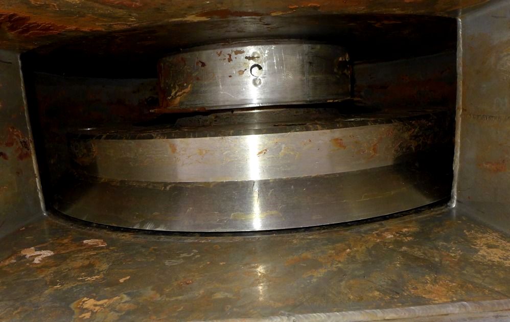 Max bowl speed 3500 RPM, rated @ 150 GPM, pressure discharge design, 6" single lead hardsurfaced conveyor, 90 KW motor 380/3/50, cyclo gearbox, 18.5 KW hydraulic backdrive, feed tube and guards. Mounted on a stand. 1988 vintage. Very good condition. FCA Europe.