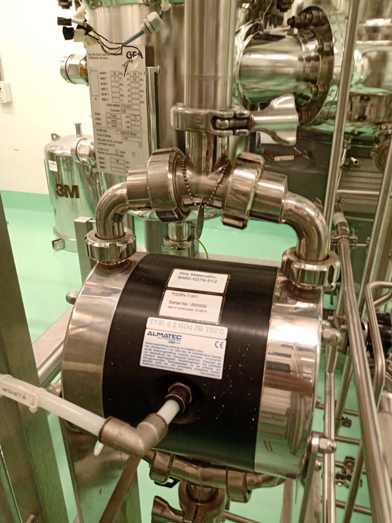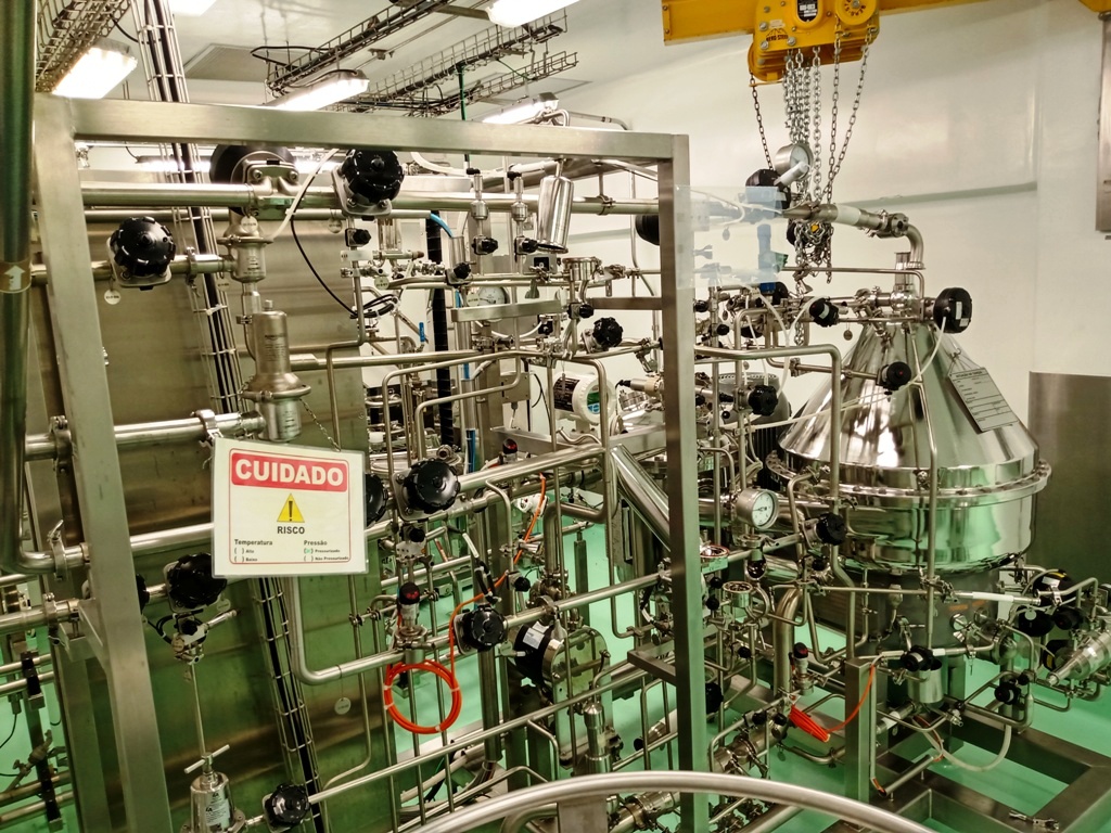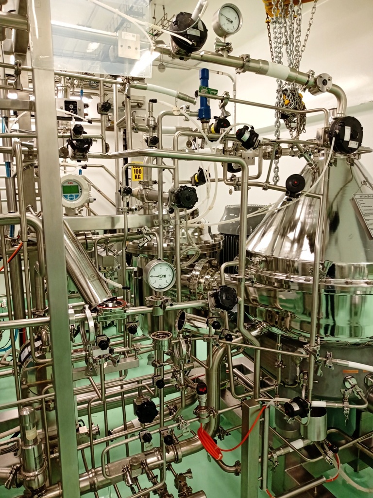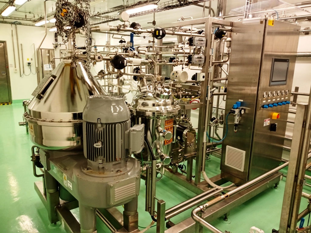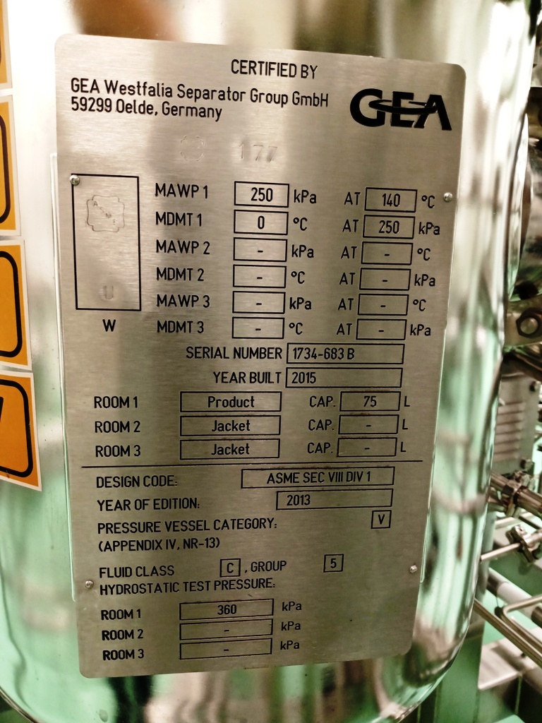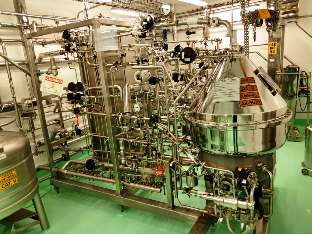 Max bowl speed 7250 RPM, rated @ 1500-3000 LPH, solids capacity 10L, bowl volume 20L. Steam sterilizable (SIP up to 2.5 bar @ 137C) FDA/USP class 4 seals, fully CIP, hydrohermetic feed system, 18.5 KW motor 460/3/60/1750 RPM with VFD, feed pump, all valves and piping, vibration monitor, tools and control panel unitized on a portable skid. 2015 vintage. Excellent condition. FCA Brazil.